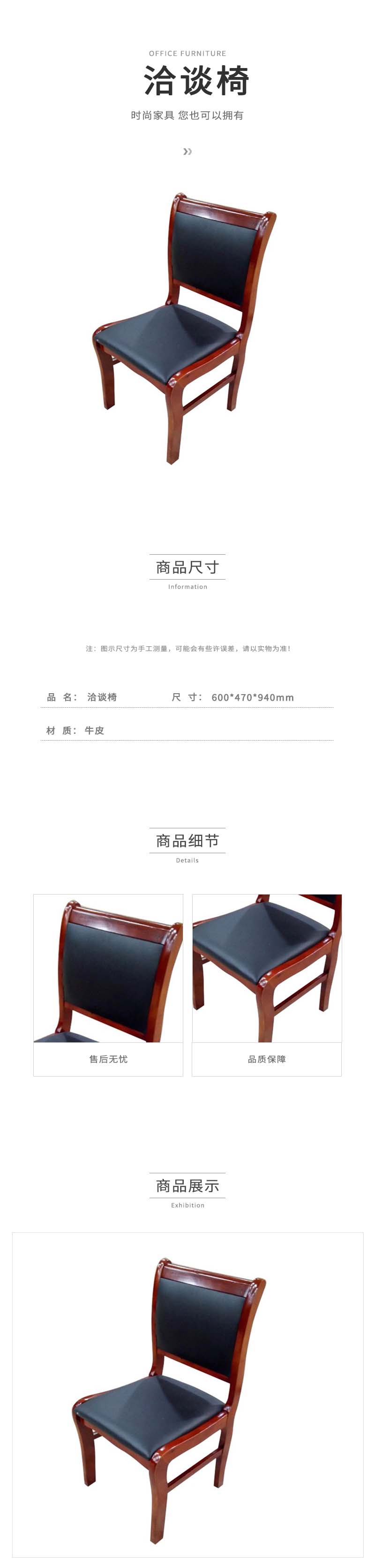 企诺 会议椅洽谈椅牛皮 QV058 600*470*940mm 黑色(单位:张)