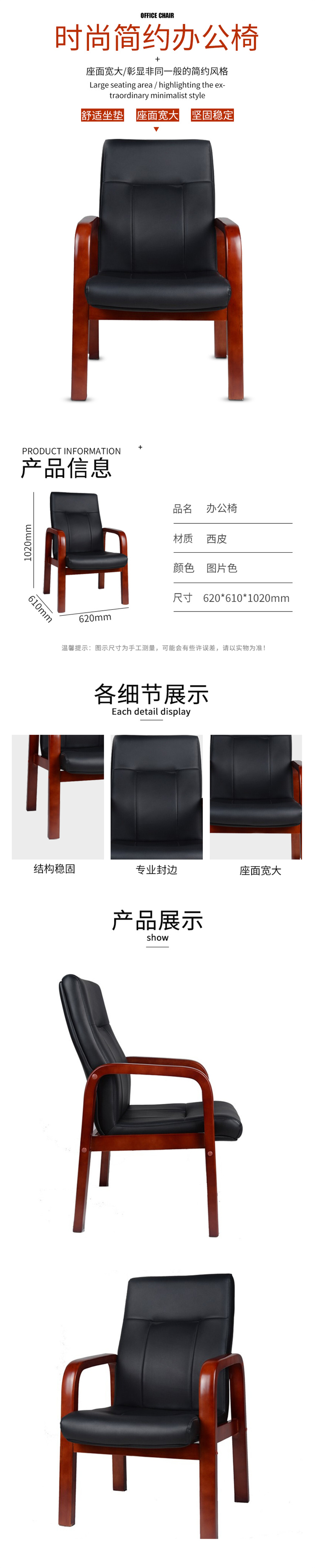 企诺 办公椅洽谈椅西皮 QV062 620*610*1020mm 黑色(单位:张)