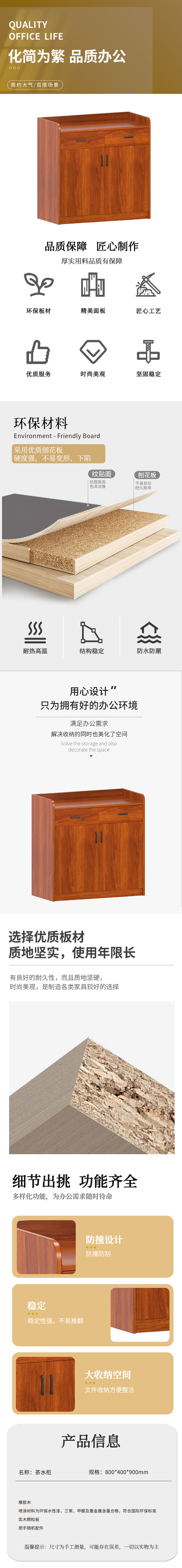 企诺 收纳柜多功能储物柜现代简约茶水柜酒柜 QF043 800*400*900mm 红胡桃(单位:个)