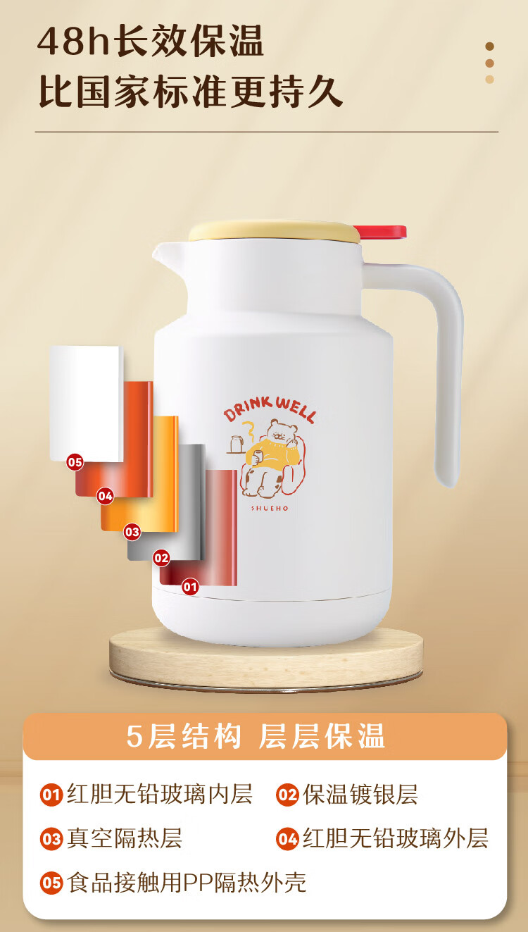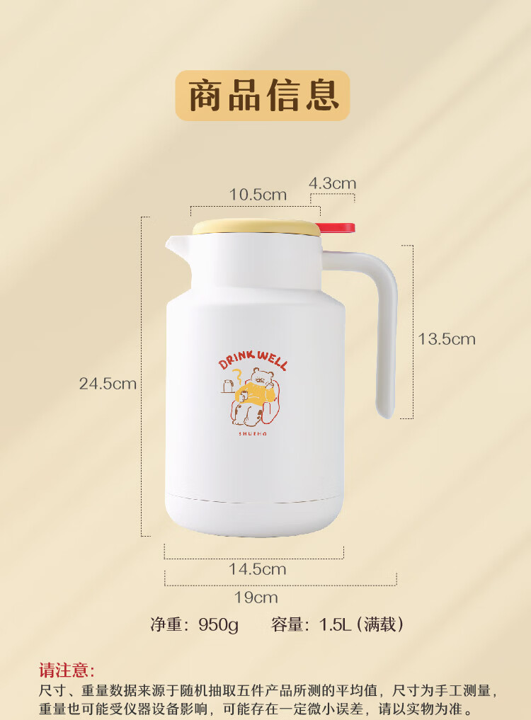树可 家用保温水壶 BPC98316 1.5L 白色(单位:个)
