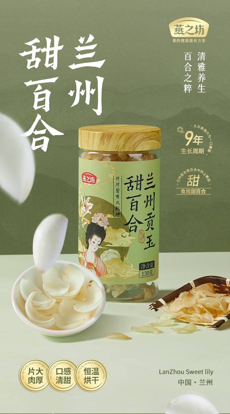 燕之坊 兰州特产精选大片 百合干 130g 绿色(单位:罐)