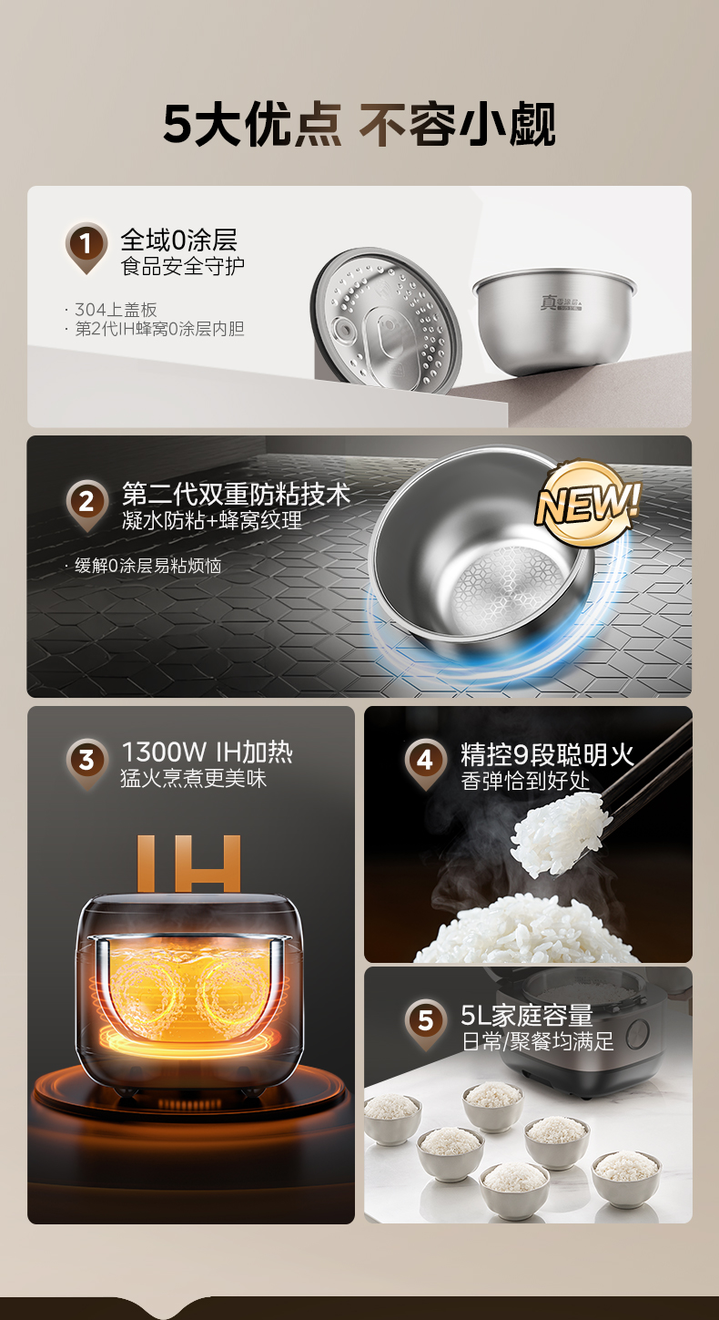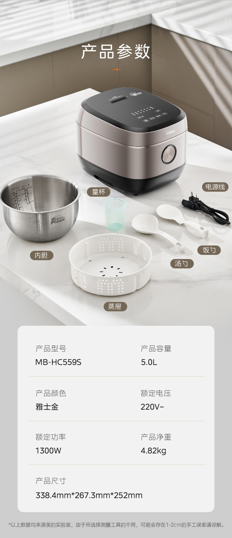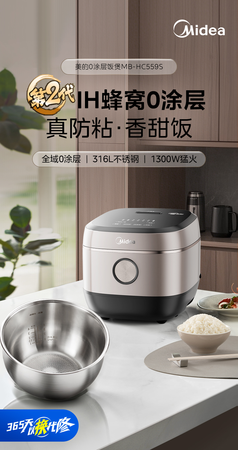 美的(Midea) IH无涂层电饭煲 电饭锅 MB-HC559S 5L 雅士金(单位:台)