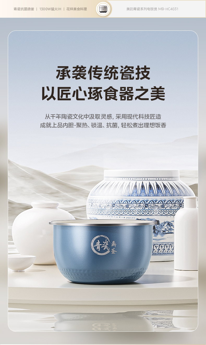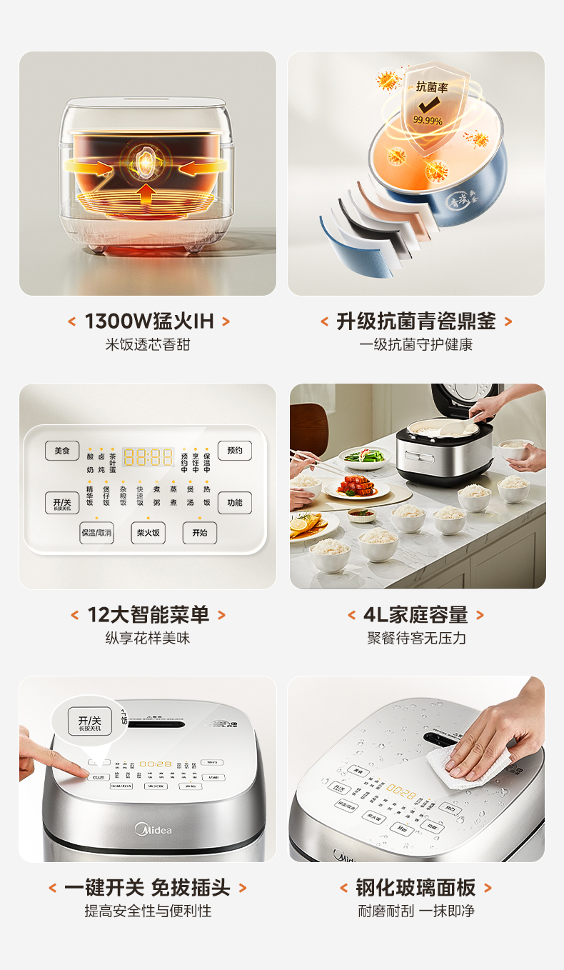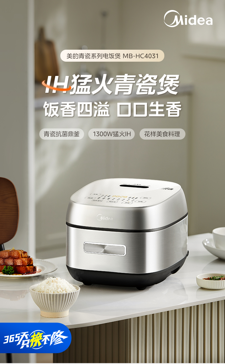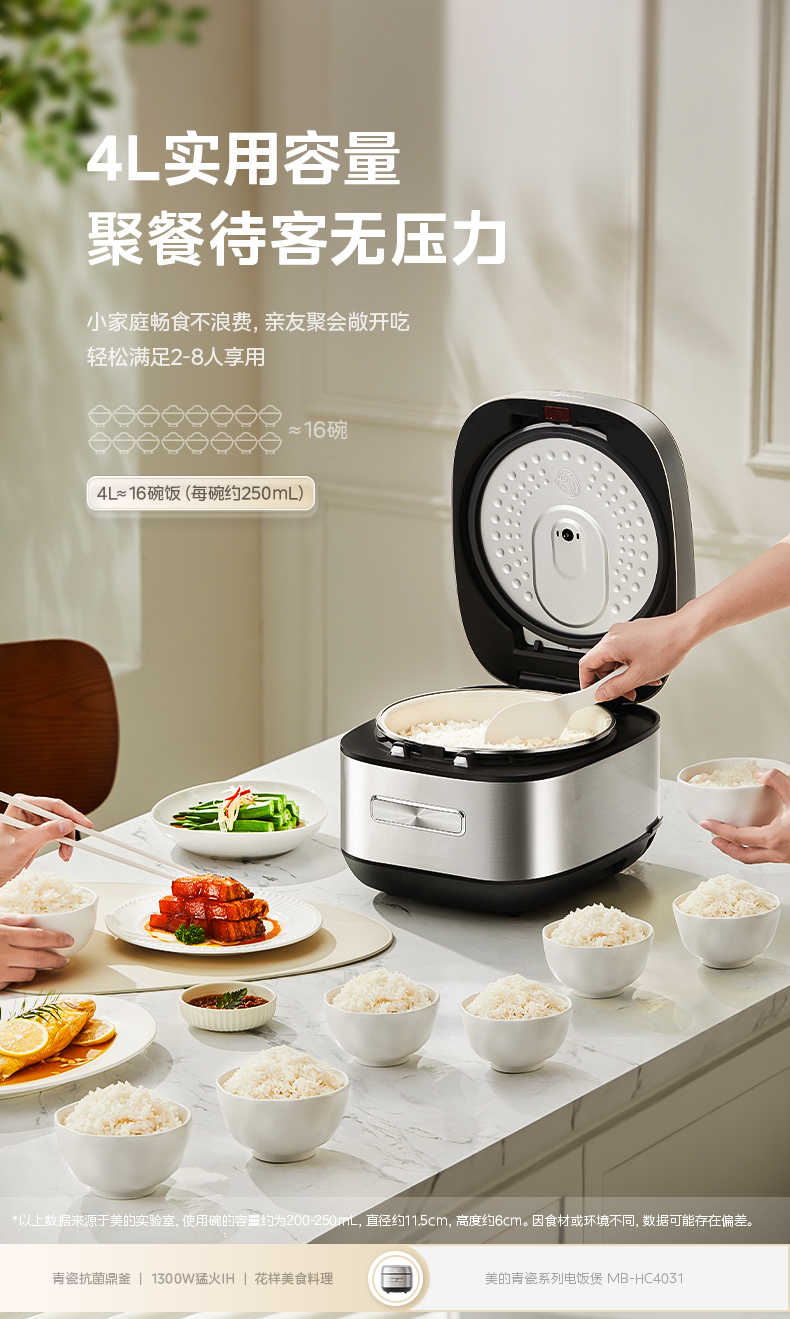 美的(Midea) 青瓷抗菌内胆IH电饭煲 MB-HC4031 4L 银色(单位:台)