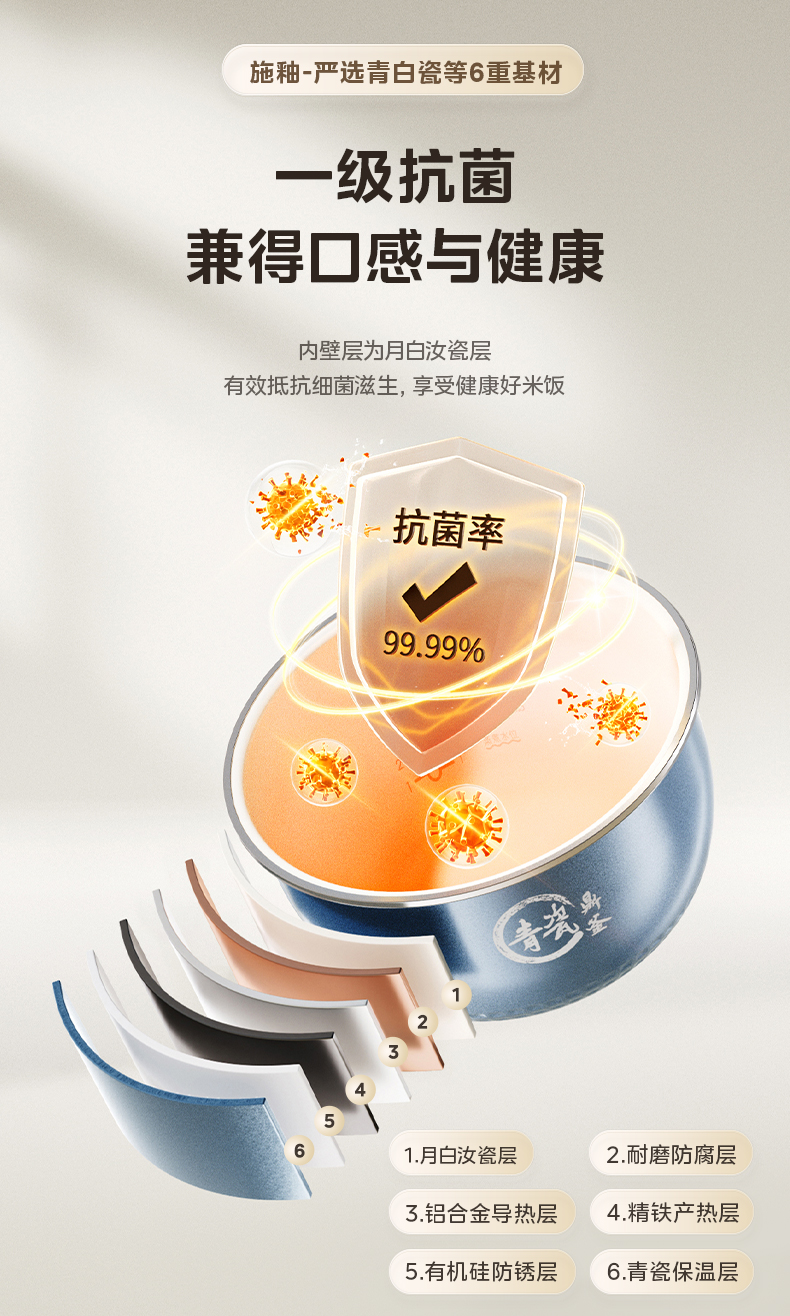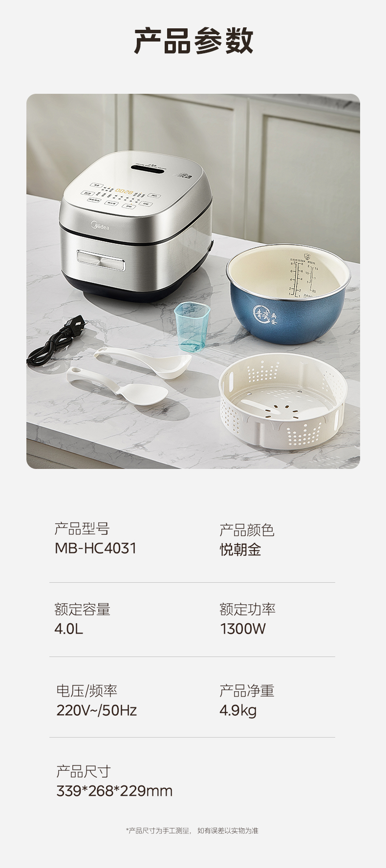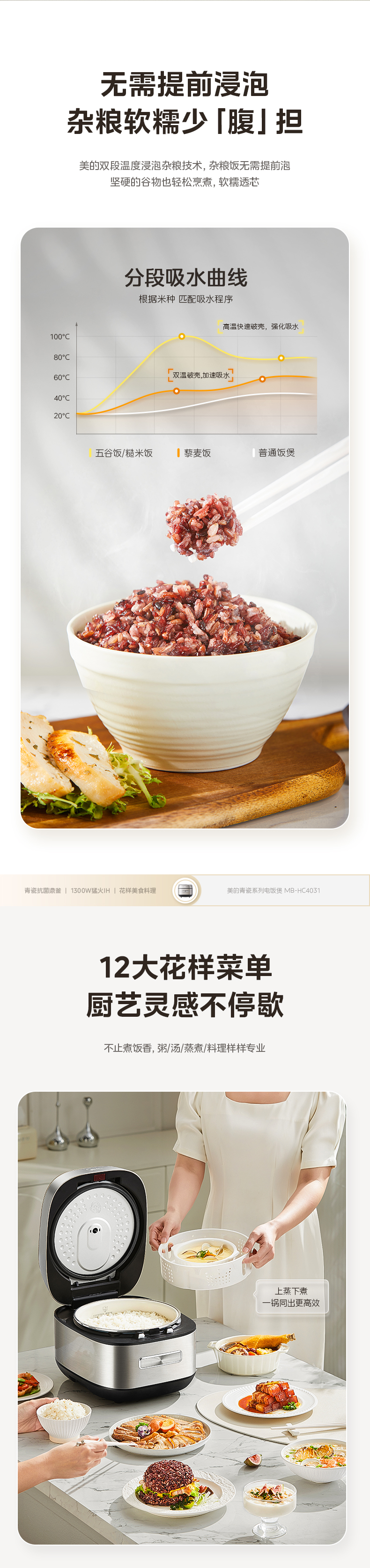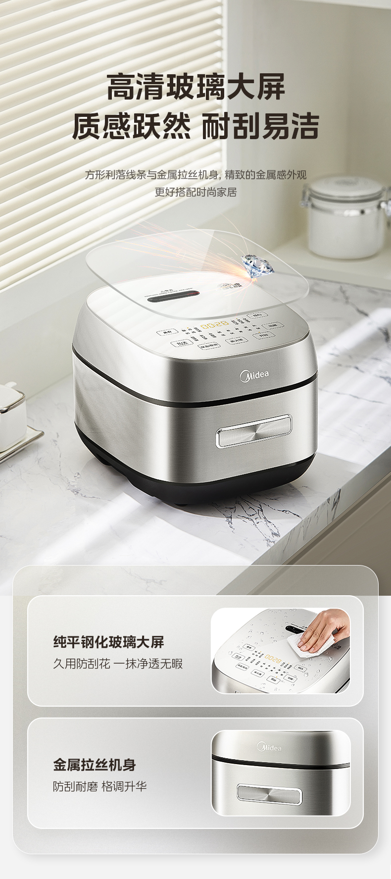 美的(Midea) 青瓷抗菌内胆IH电饭煲 MB-HC4031 4L 银色(单位:台)