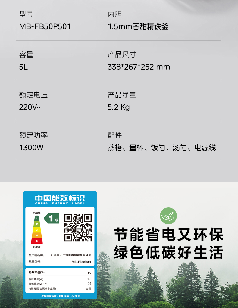 美的(Midea) IH加热电饭煲 MB-FB50P501 5L 紫色(单位:台)