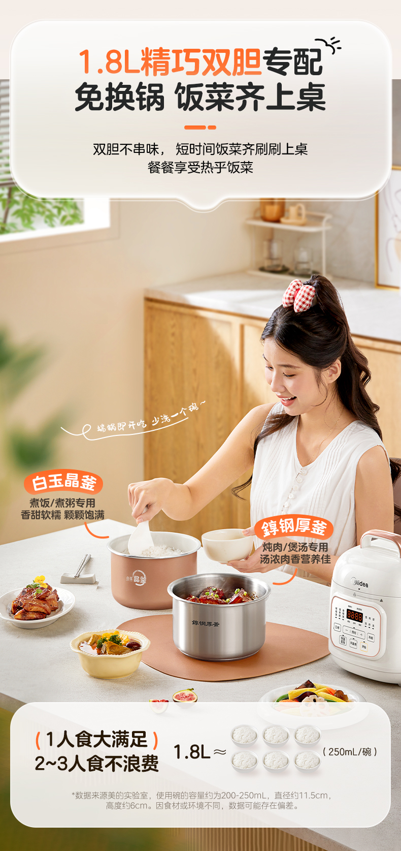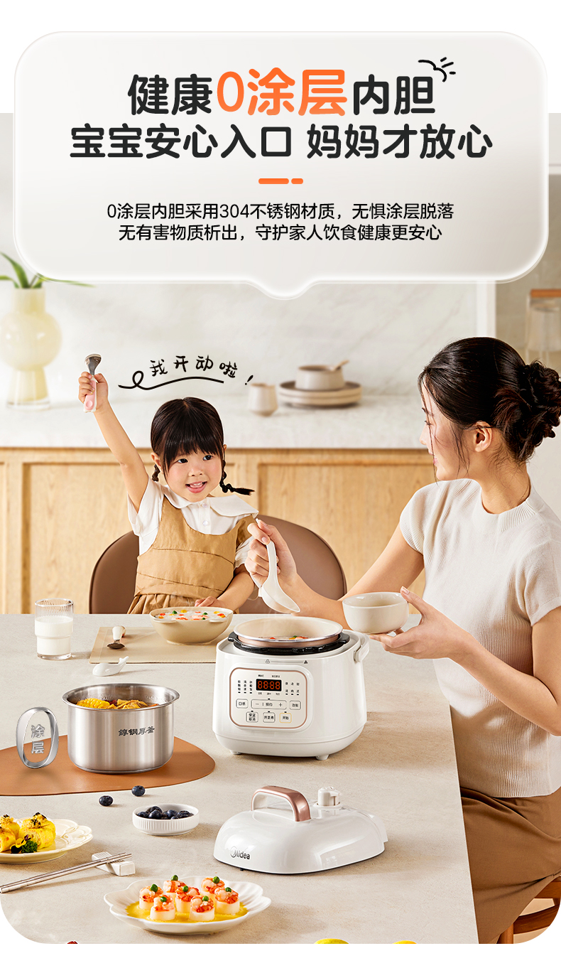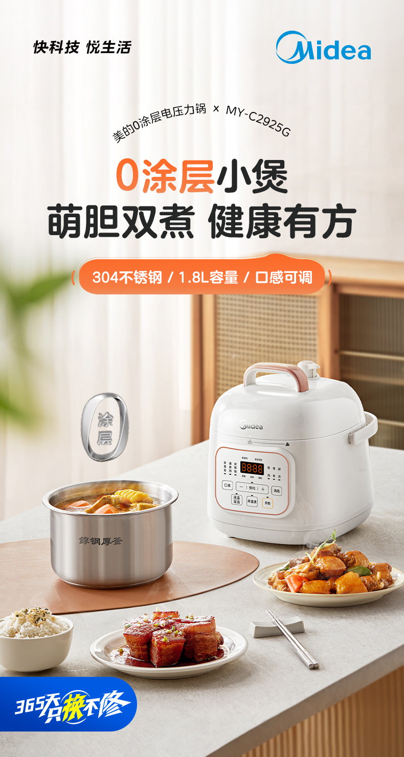 美的(Midea) 0涂层双胆电饭煲智能高压锅 MY-E2925G 1.8L 白色(单位:台)