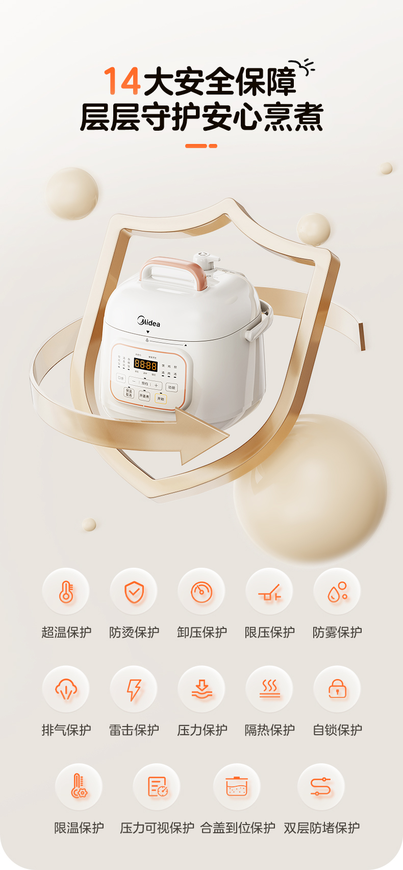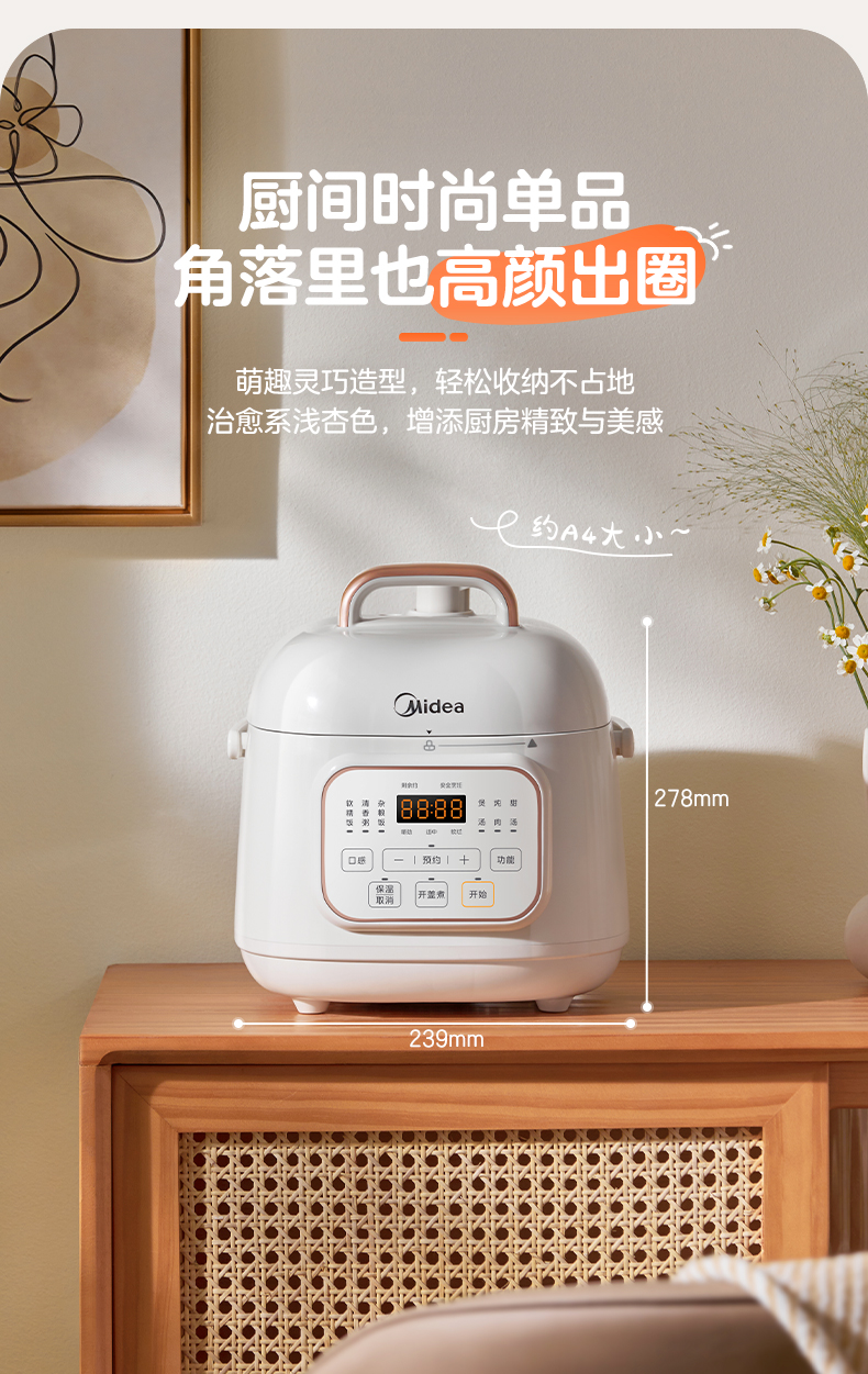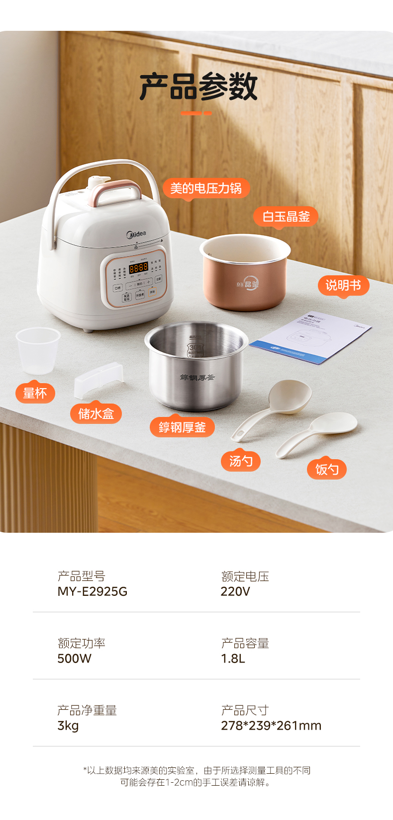 美的(Midea) 0涂层双胆电饭煲智能高压锅 MY-E2925G 1.8L 白色(单位:台)