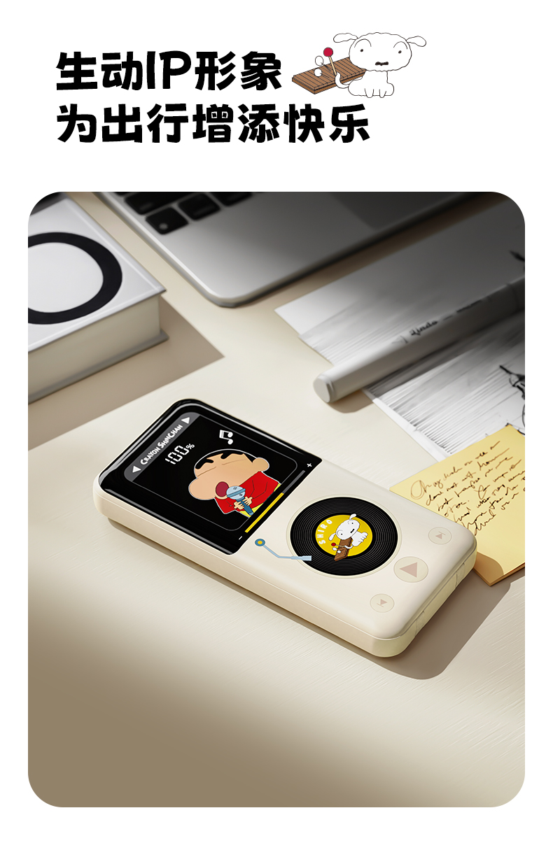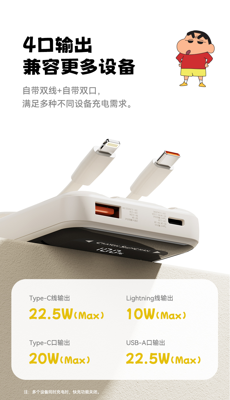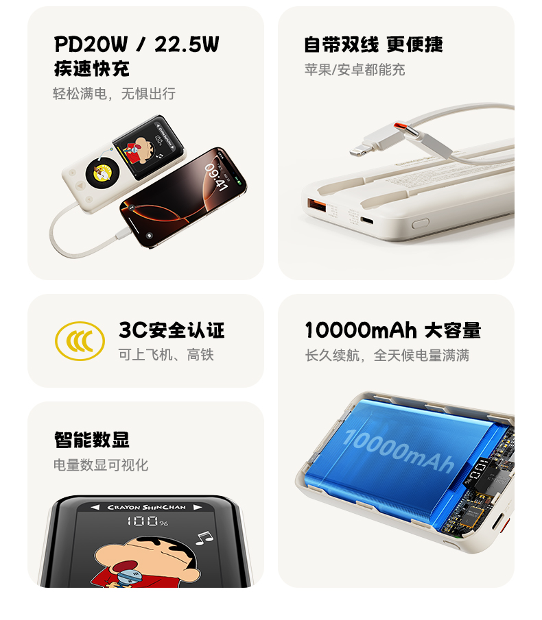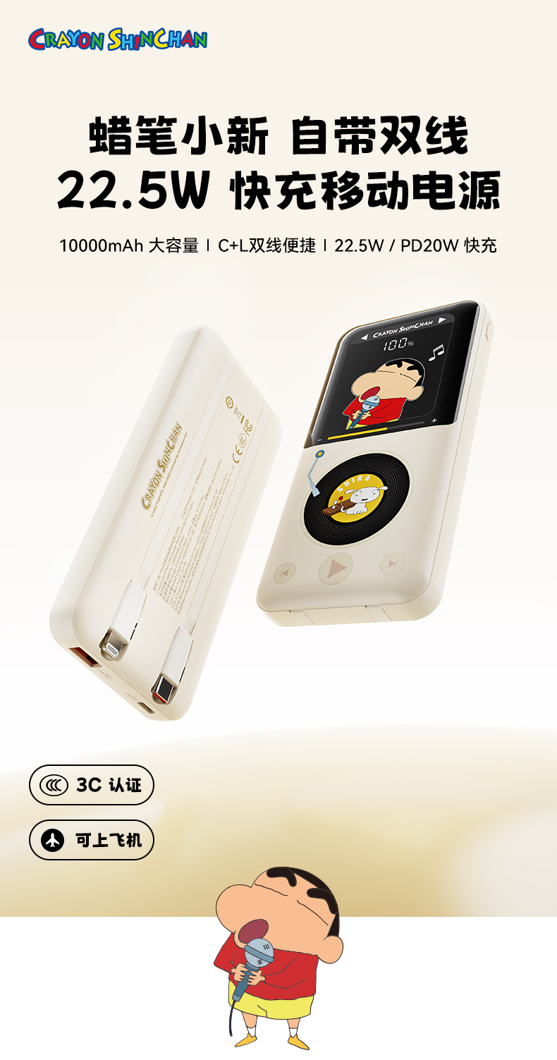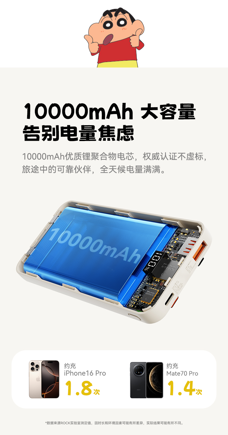 ROCK 蜡笔小新 自带双线PD 22.5W快充移动电源 P65 10000mAh 米白色(单位:个)