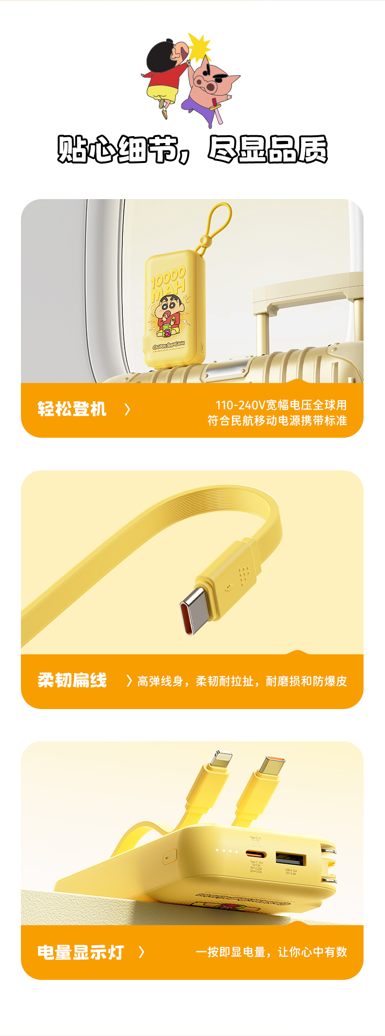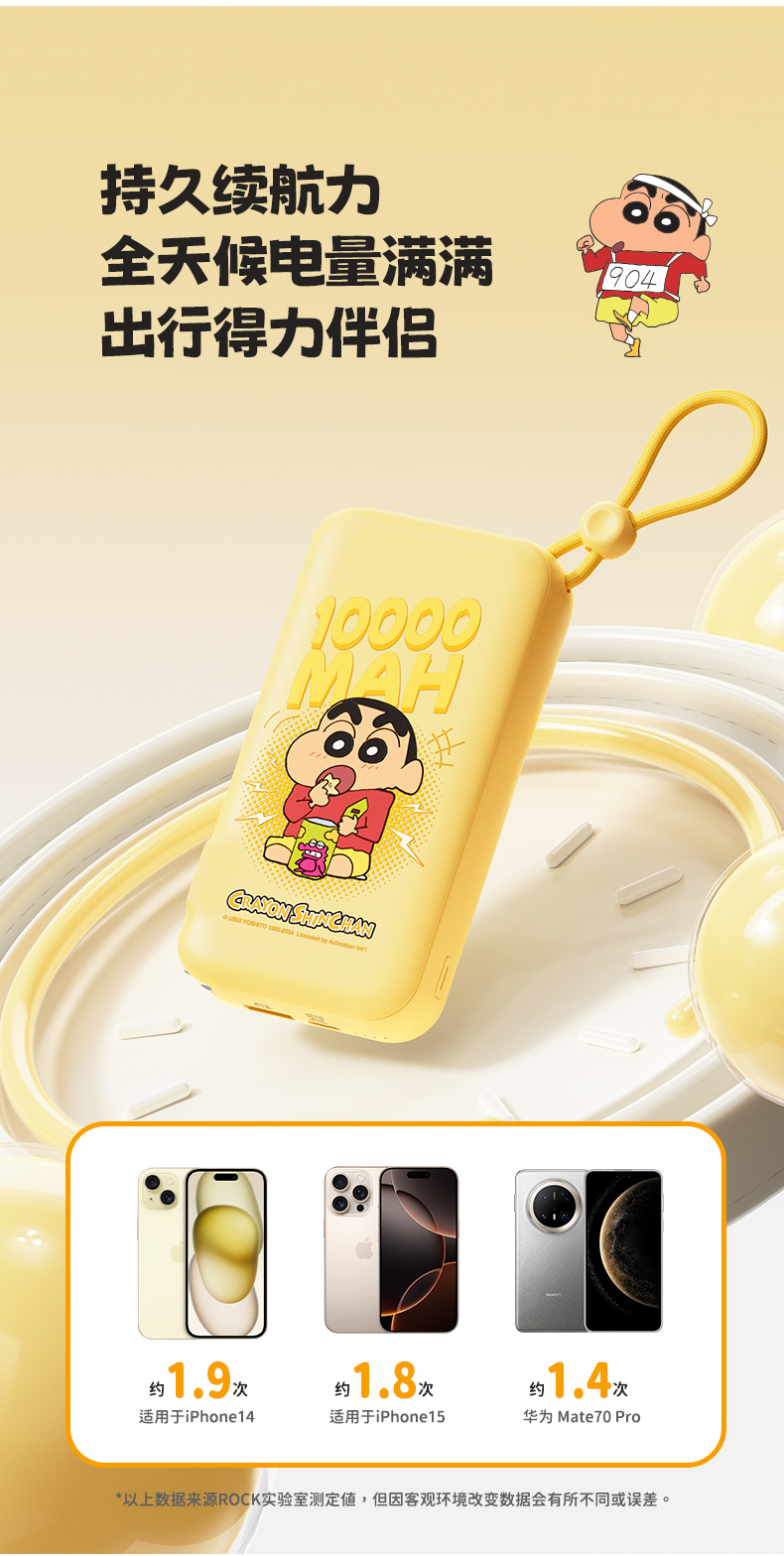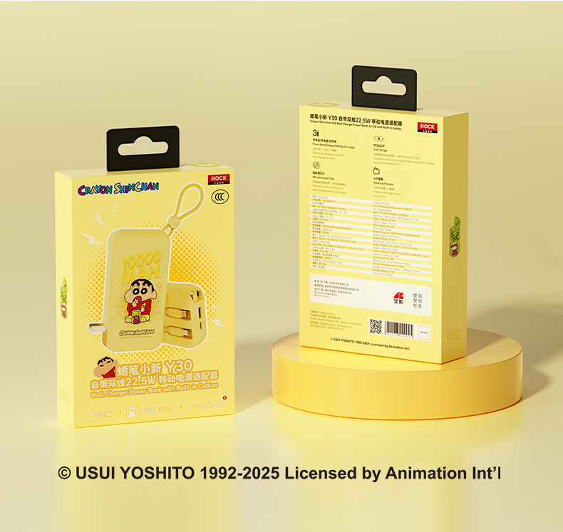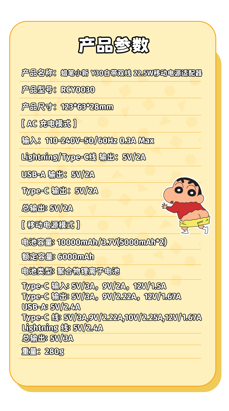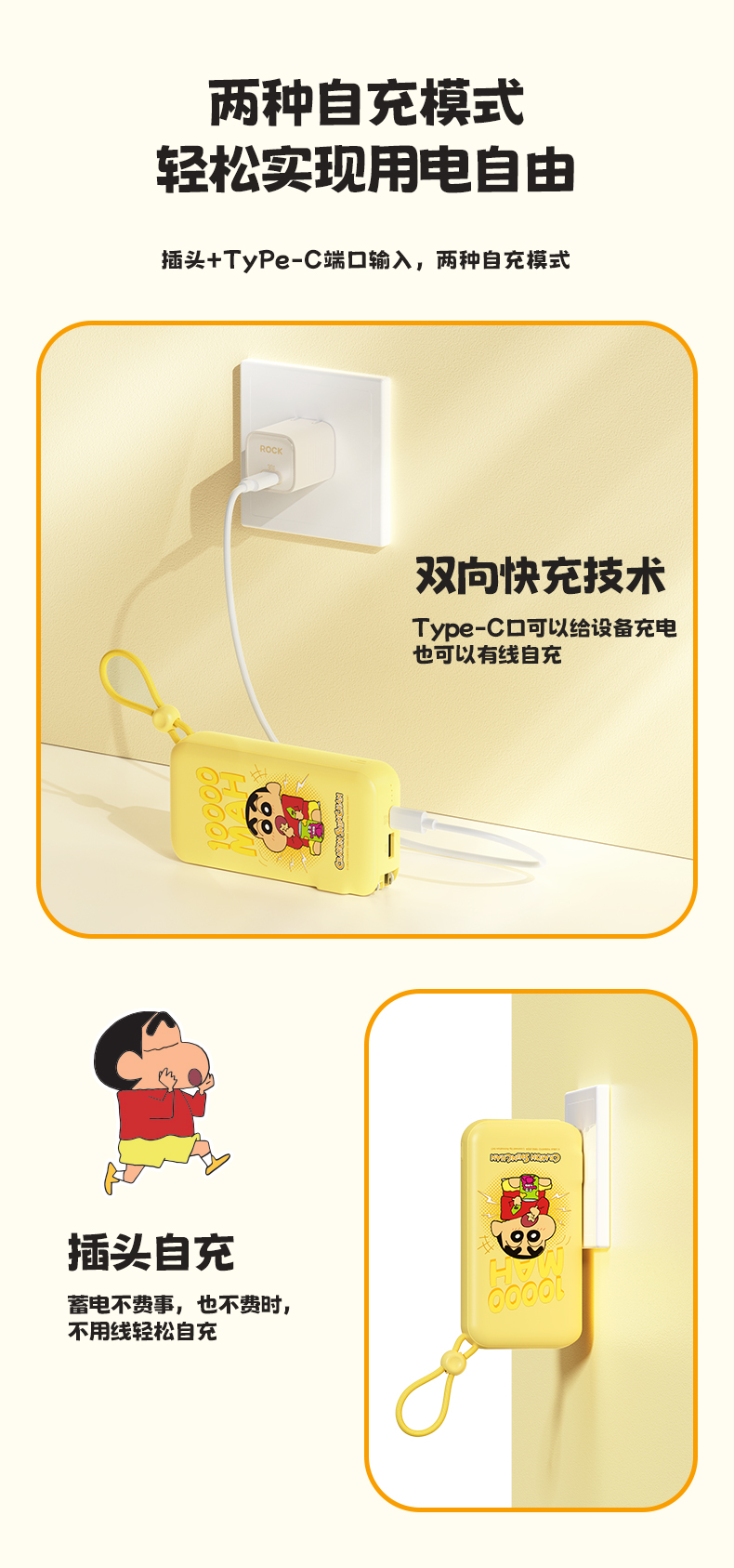 ROCK 蜡笔小新 Y30 自带双线22.5W 移动电源适配器 RCY0030 10000mah 自带中规插头 黄色(单位:个)