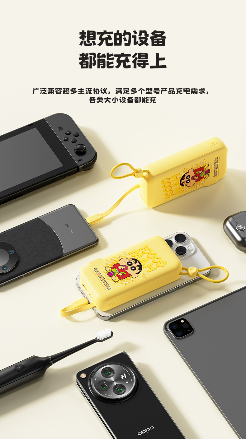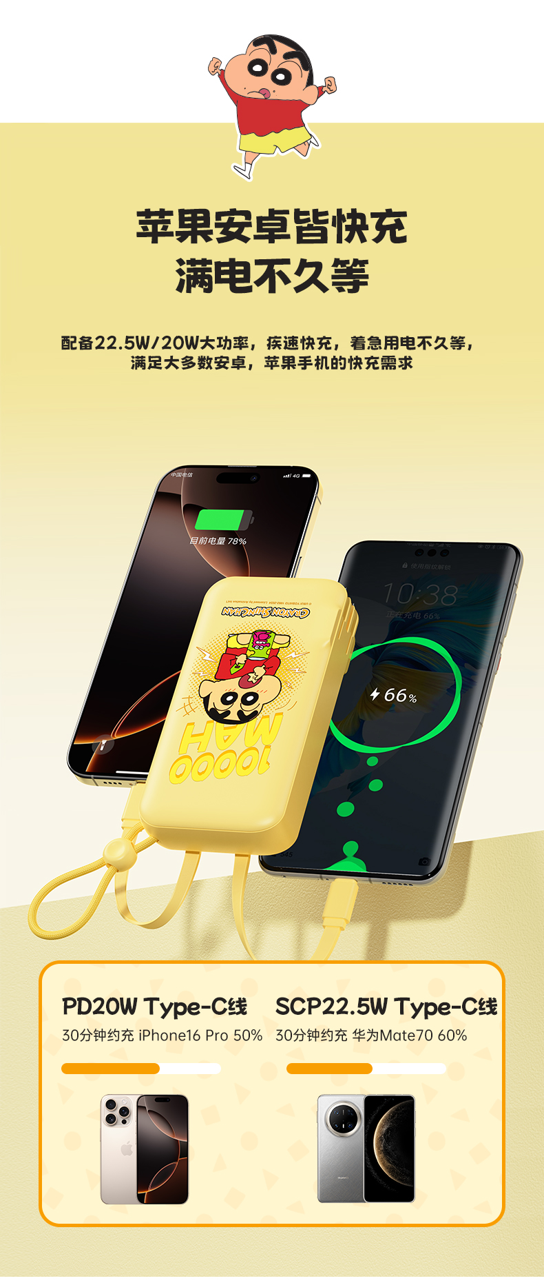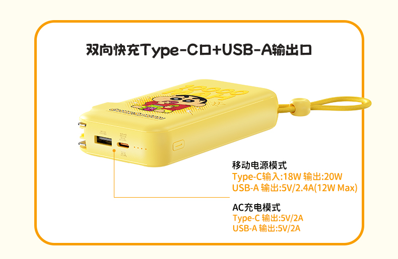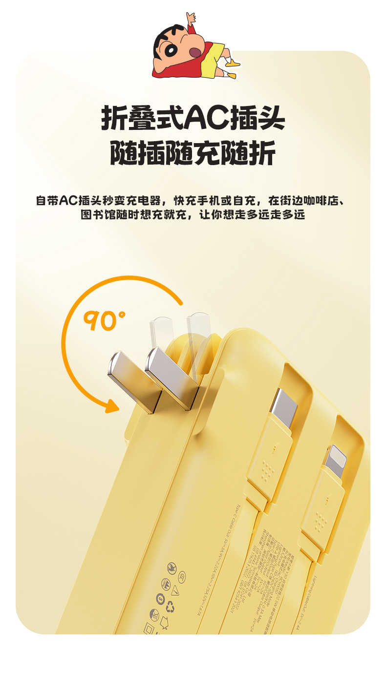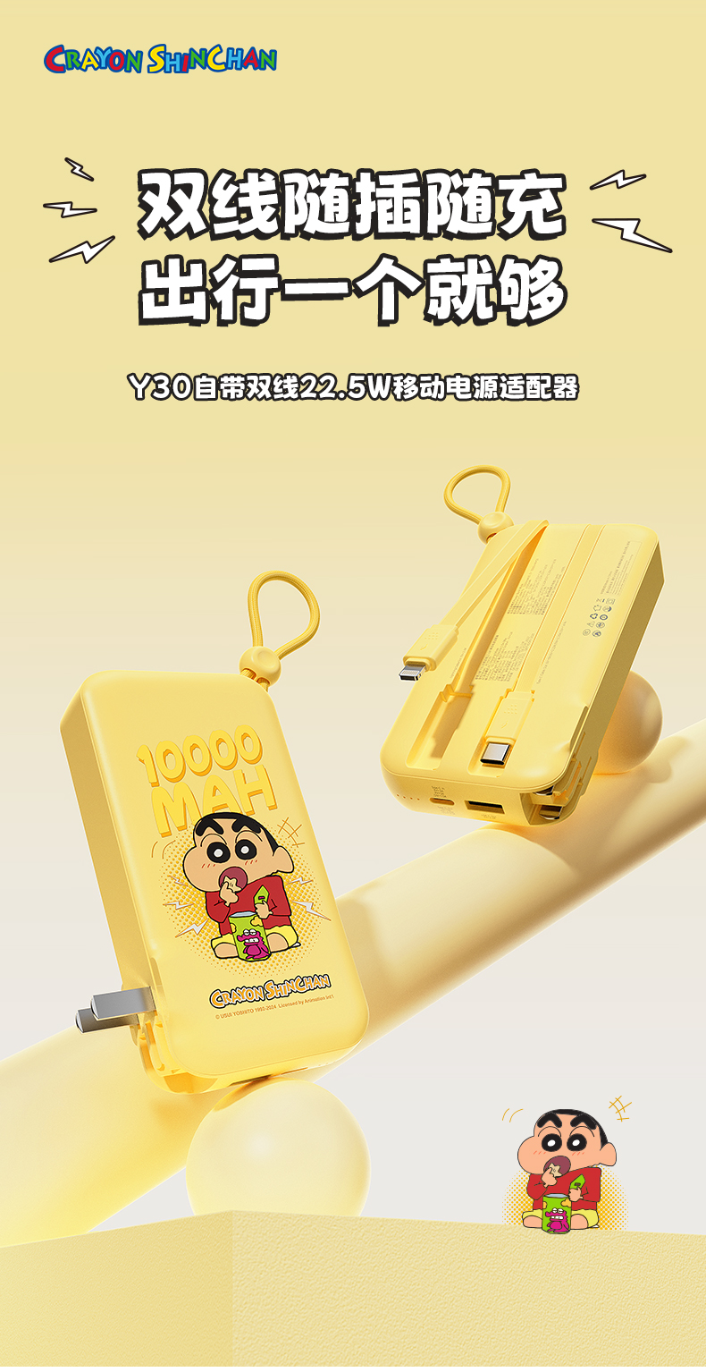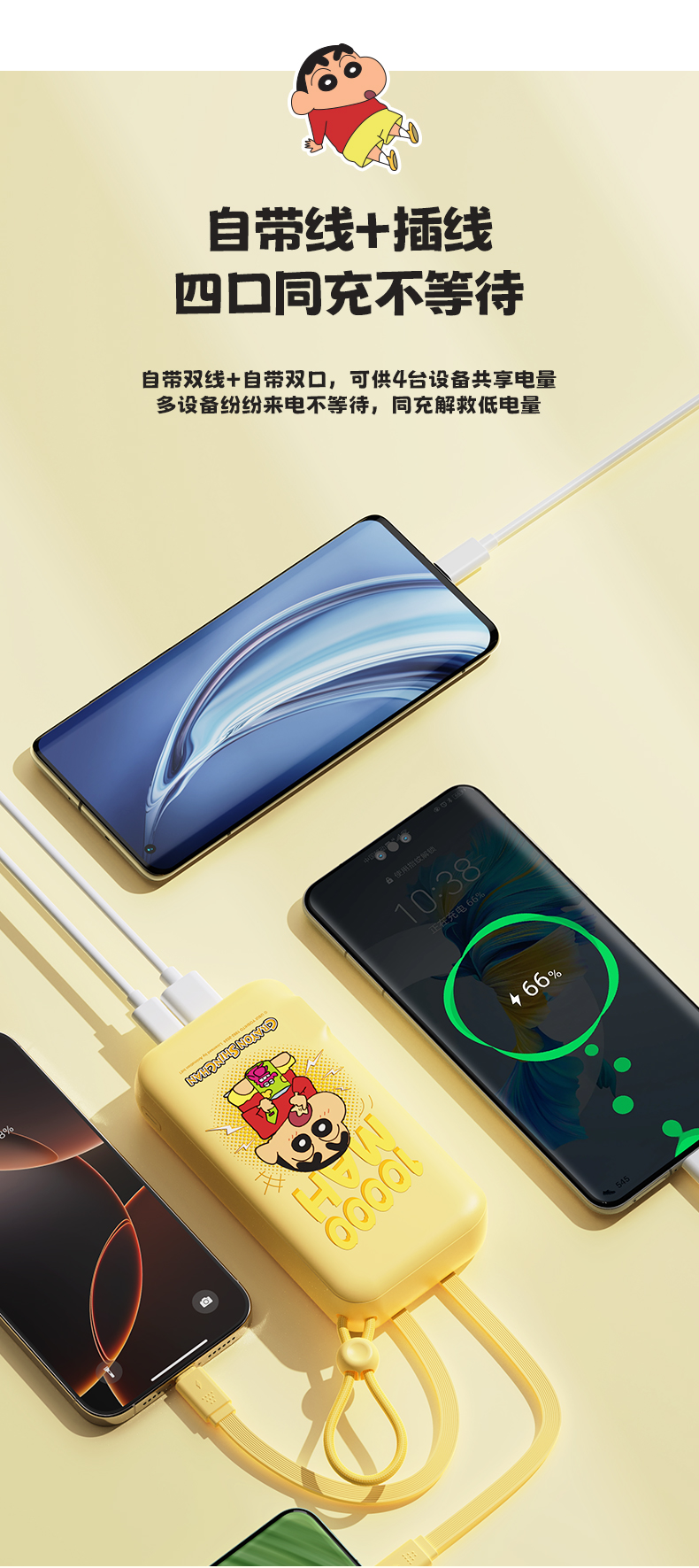 ROCK 蜡笔小新 Y30 自带双线22.5W 移动电源适配器 RCY0030 10000mah 自带中规插头 黄色(单位:个)