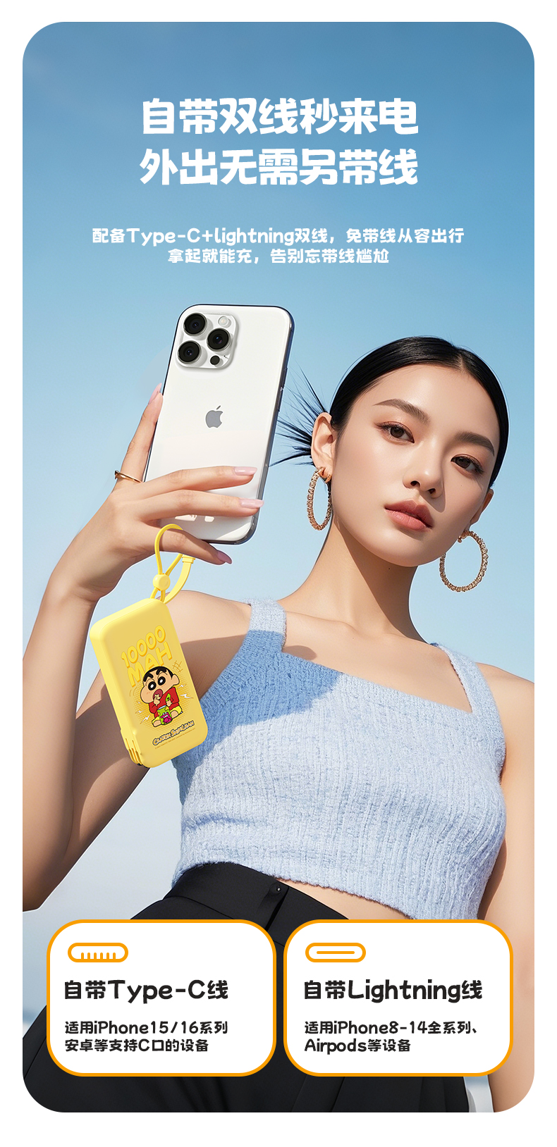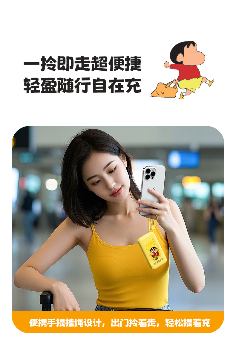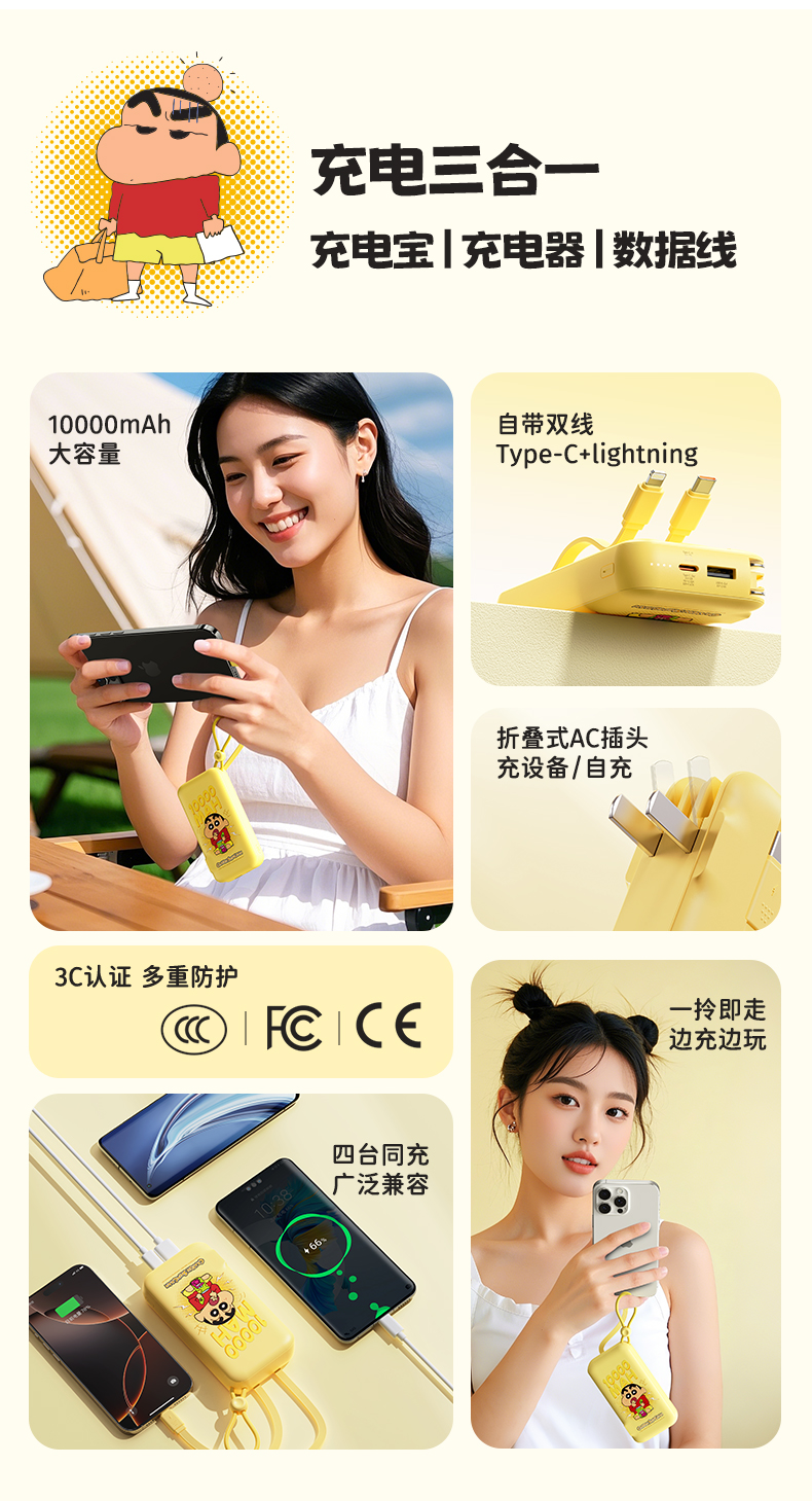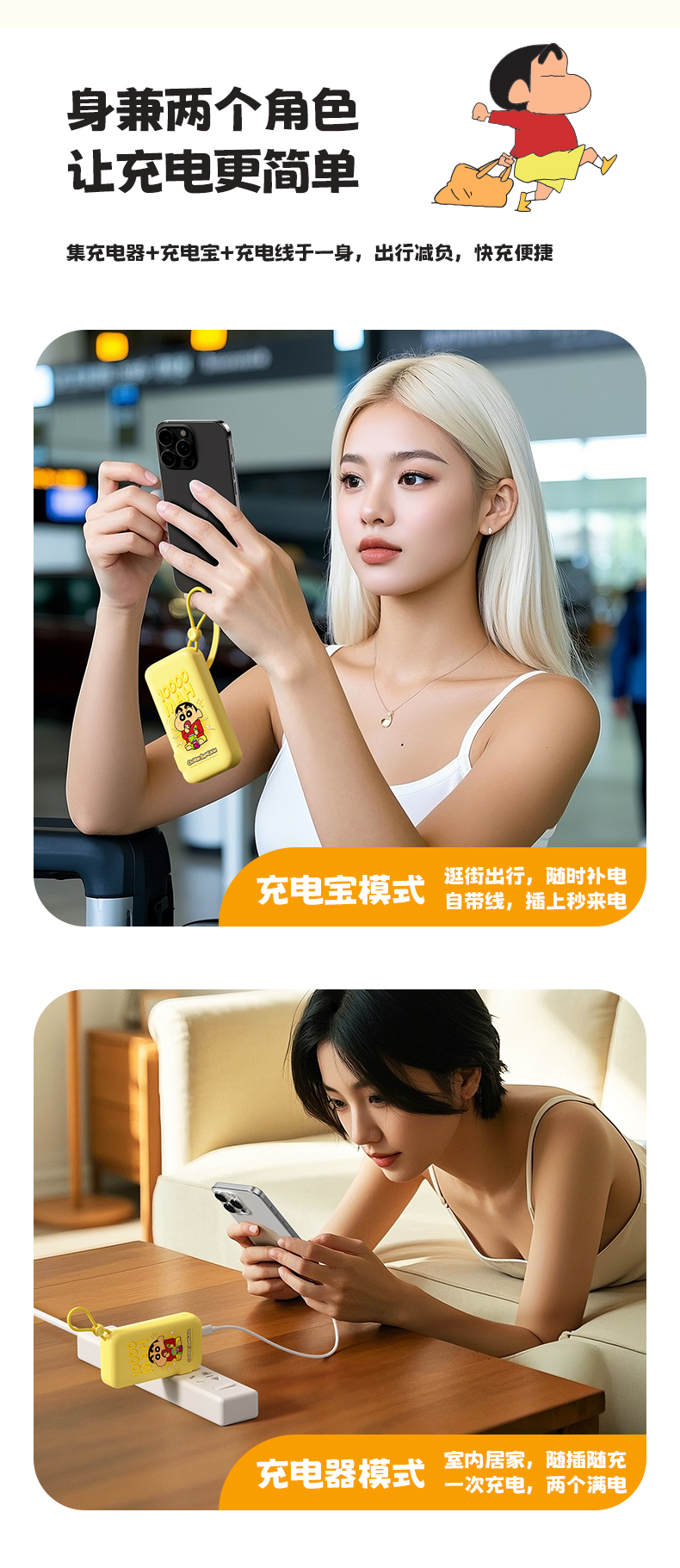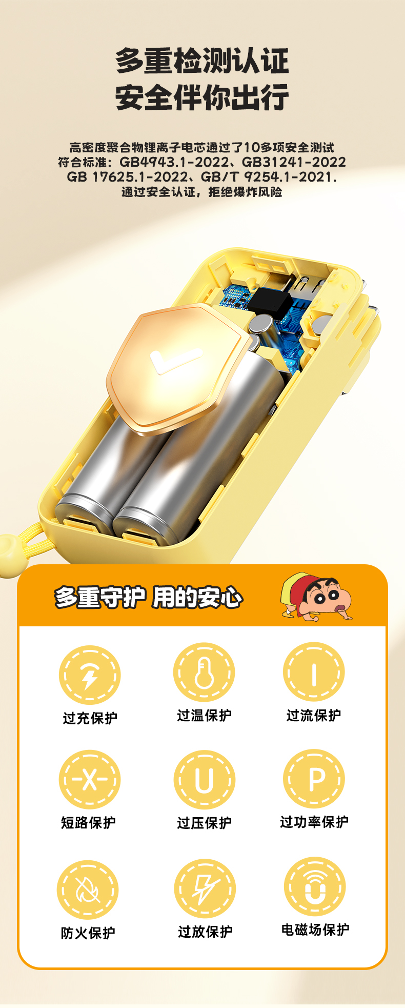 ROCK 蜡笔小新 Y30 自带双线22.5W 移动电源适配器 RCY0030 10000mah 自带中规插头 黄色(单位:个)