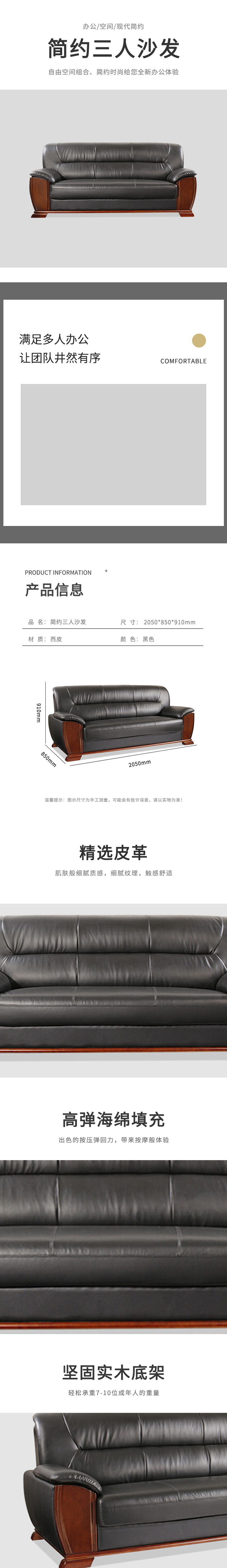企诺 办公沙发三人位 QH009 2050*850*910mm 黑色(单位:张)
