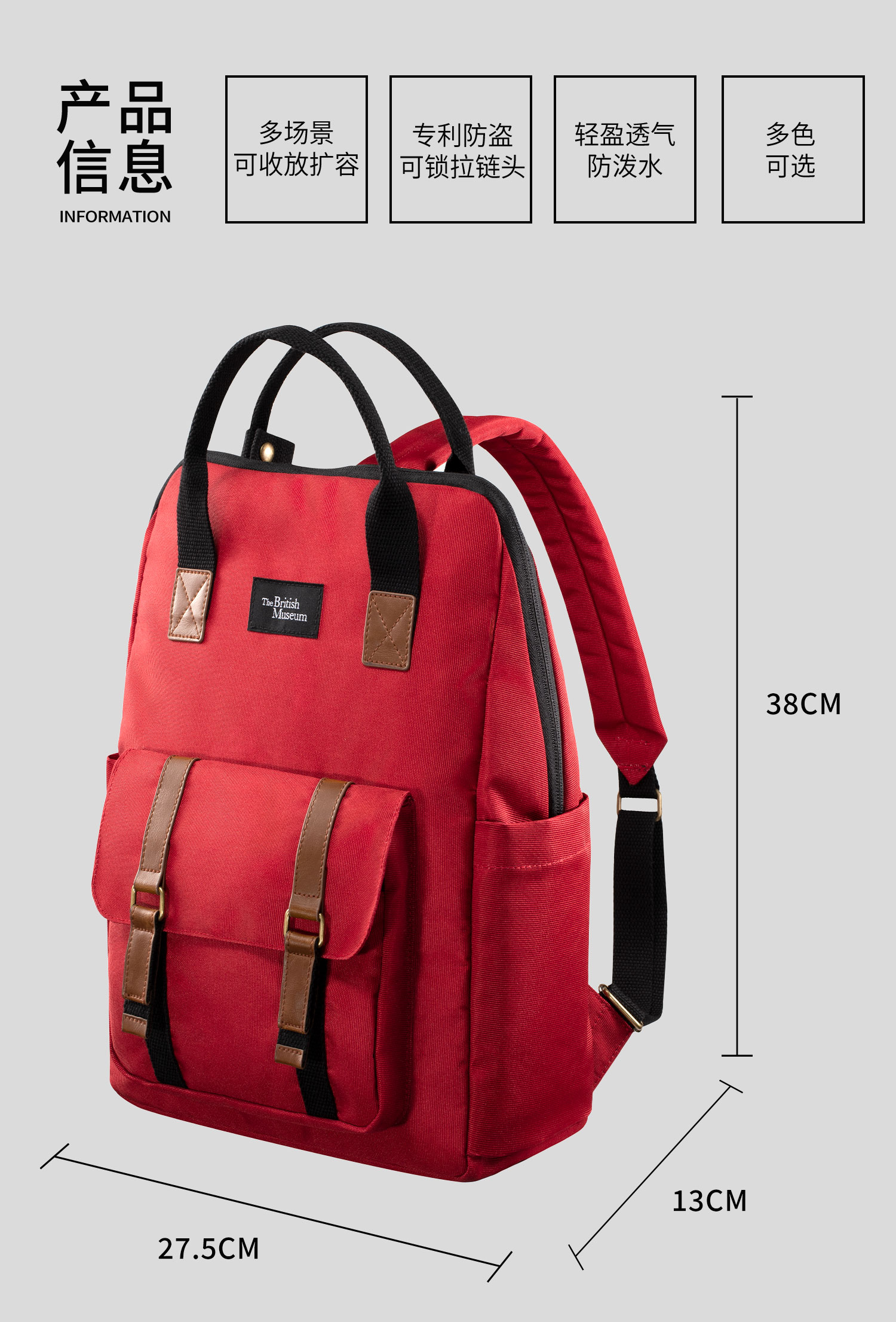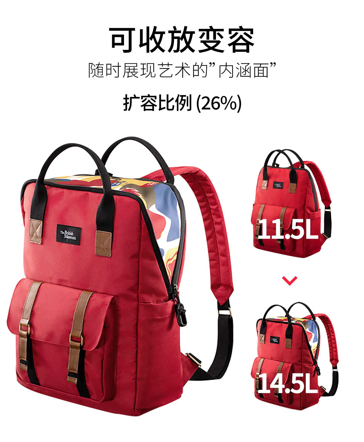 XDDESIGN 爱思迪 大英博物馆 随变可扩展多功能背包 EP705.884 27.5*38*13cm 朱砂红(单位:个)
