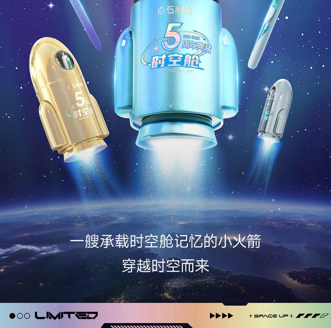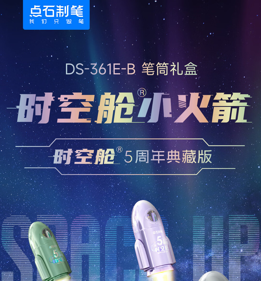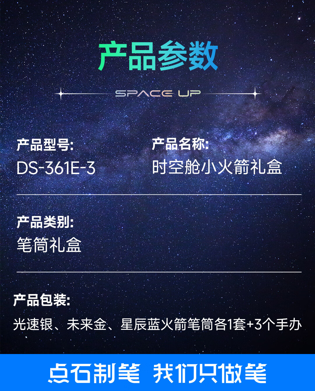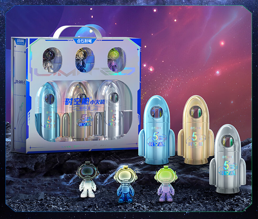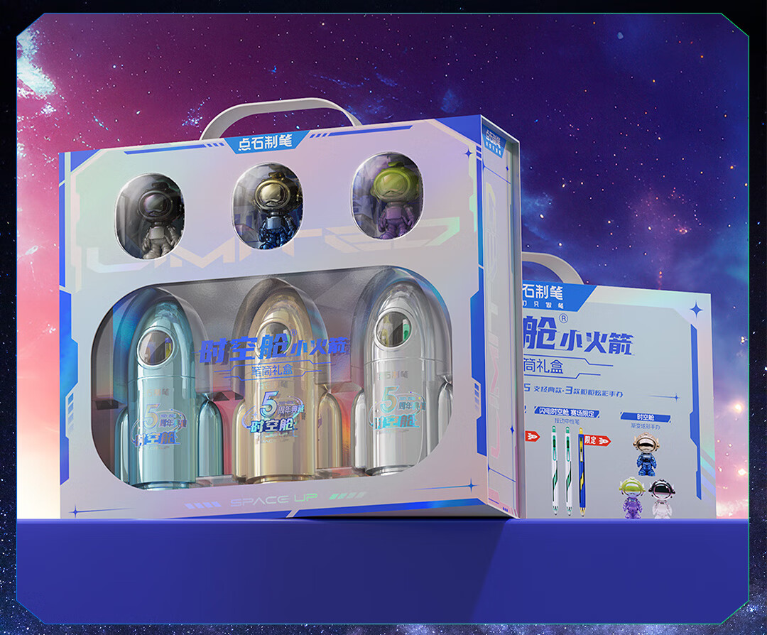 点石制笔 时空舱小火箭5周年笔筒文具套装 361E-3 10*40*37cm 金银蓝色(单位:套)