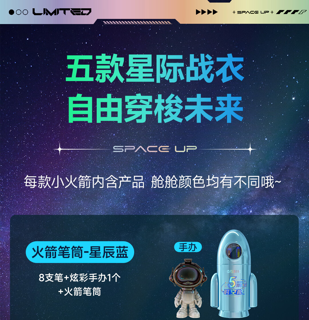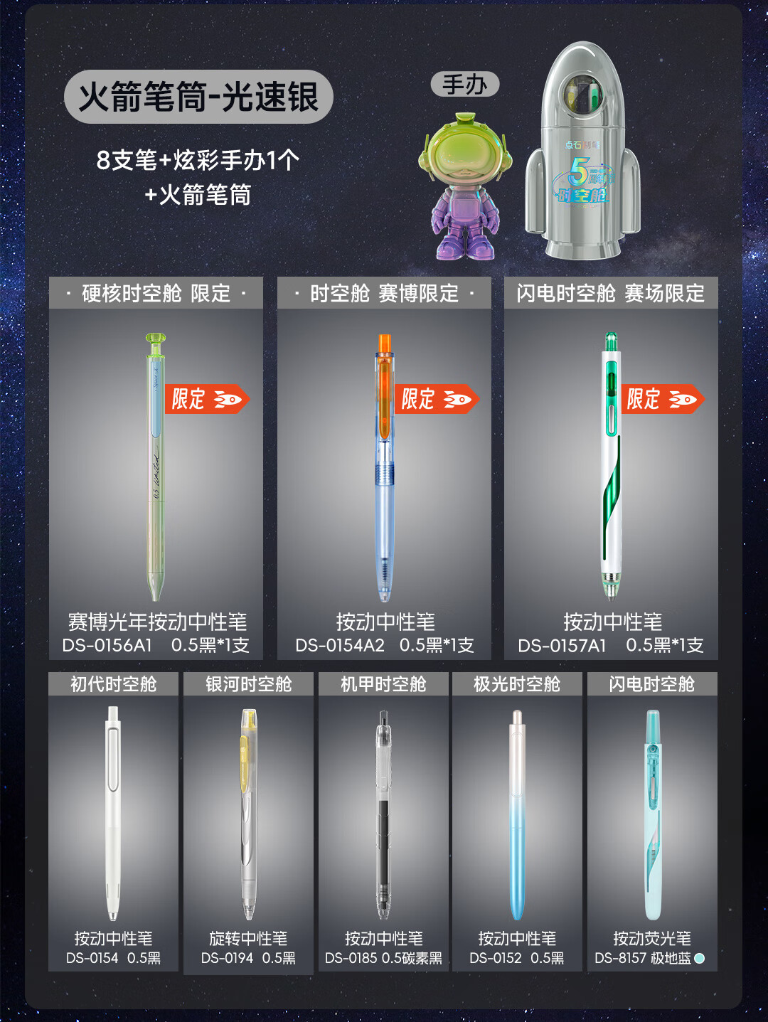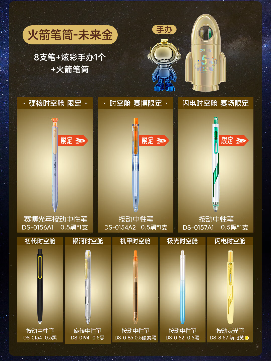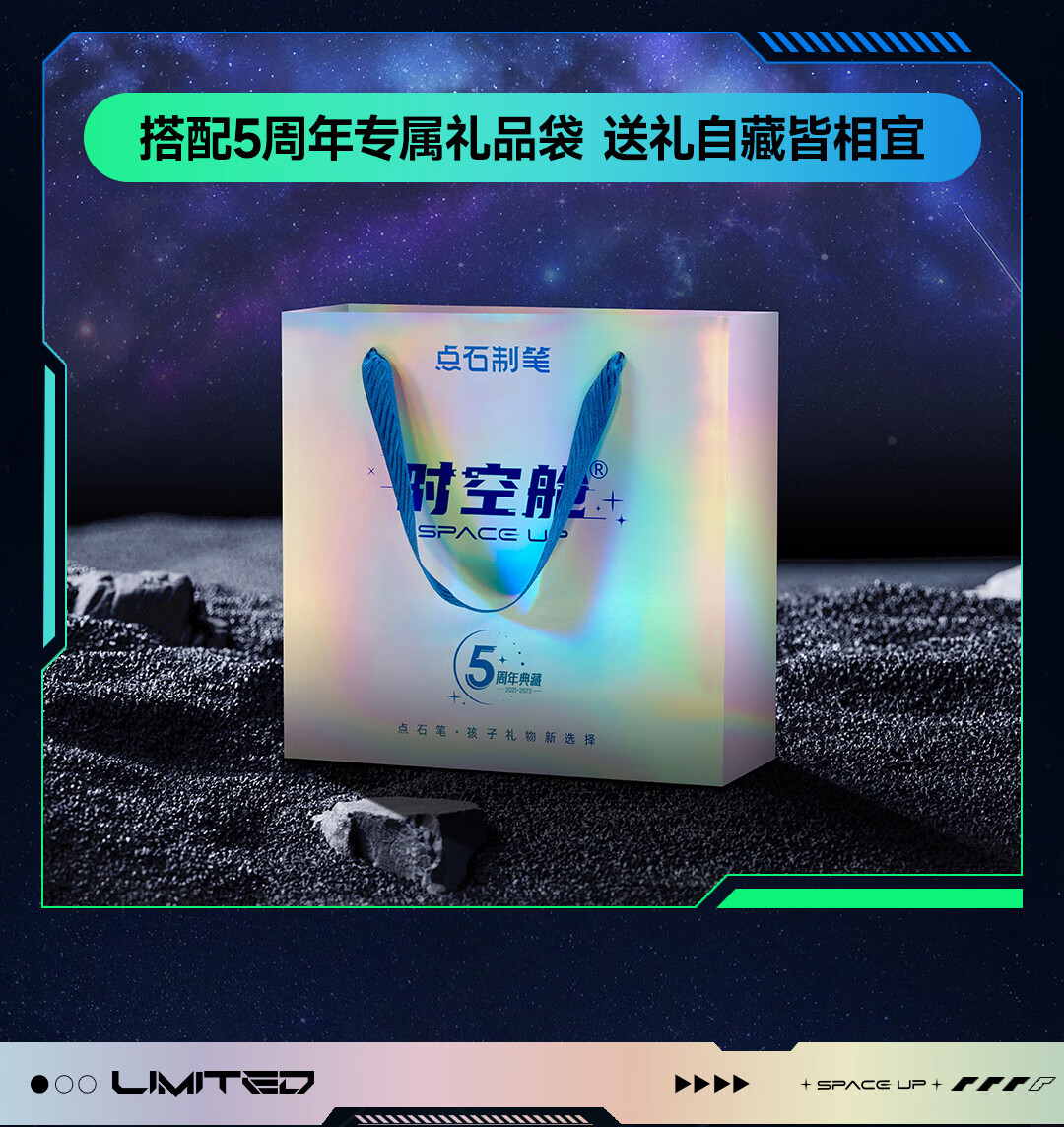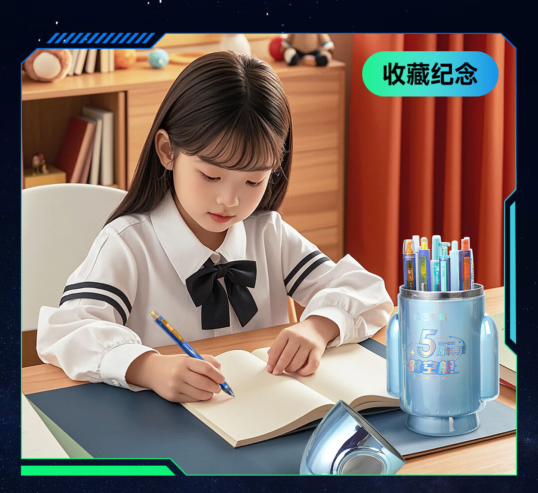 点石制笔 时空舱小火箭5周年笔筒文具套装 361E-3 10*40*37cm 金银蓝色(单位:套)