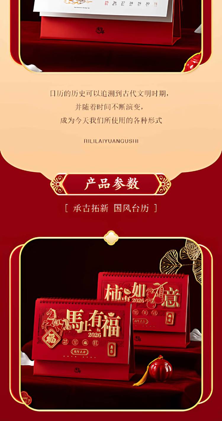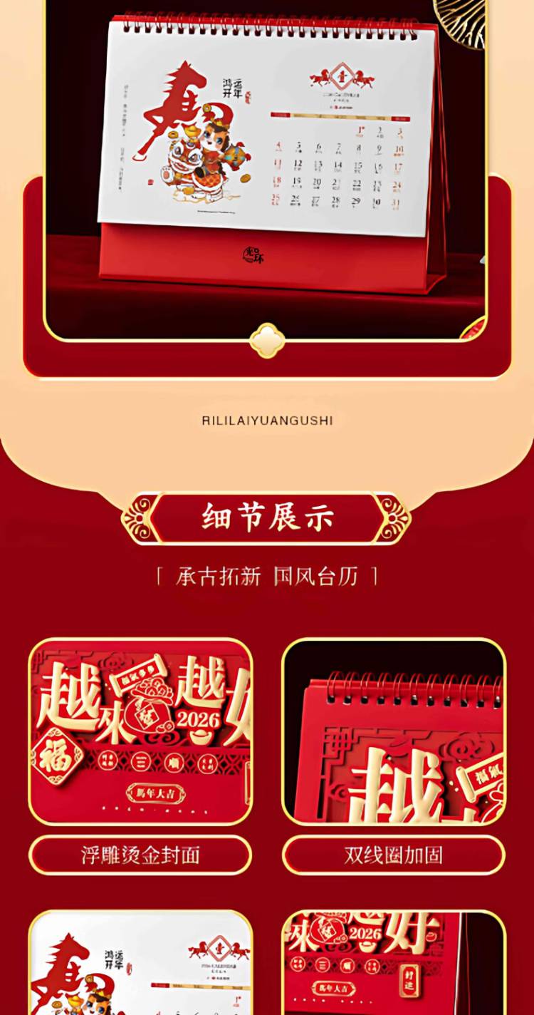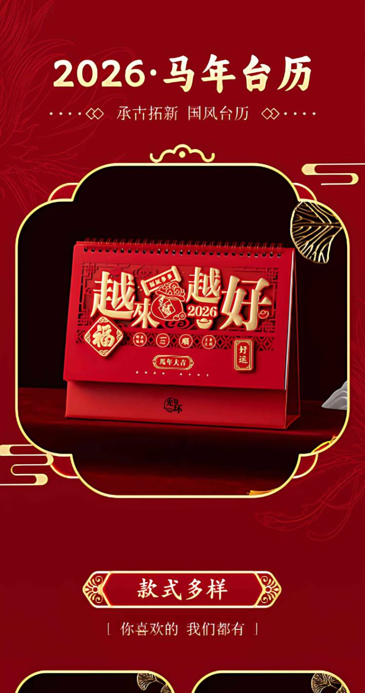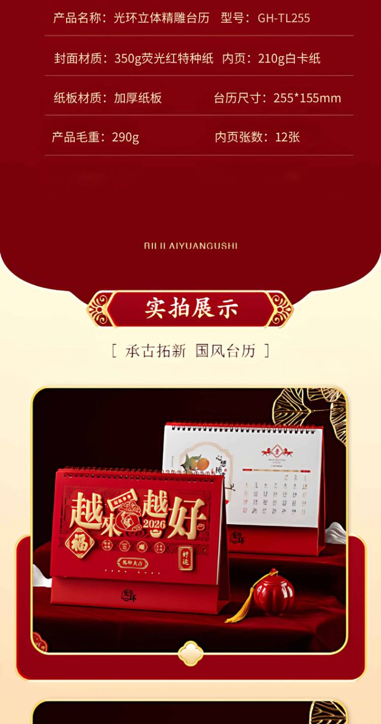 光环 2026年马年台历 精雕镂空 GH-TL255 255*155mm 红色(单位:本)