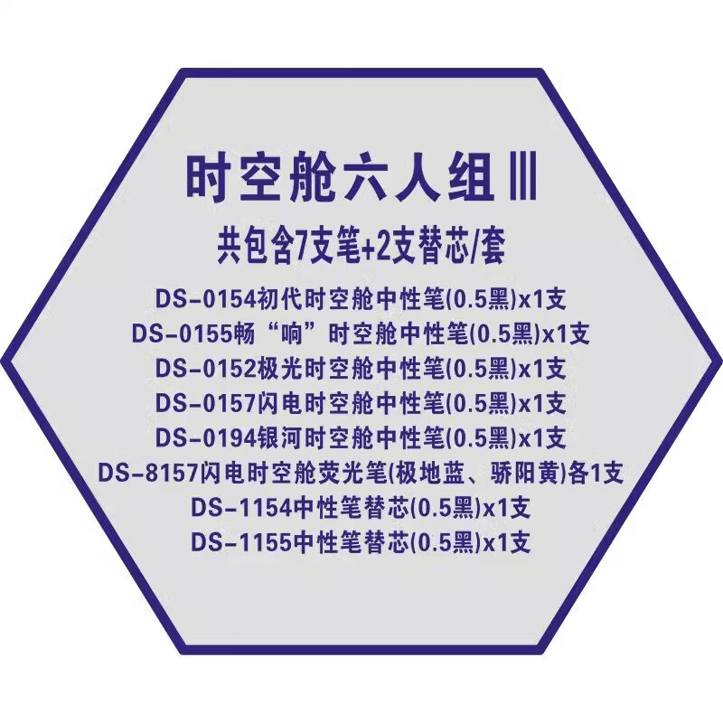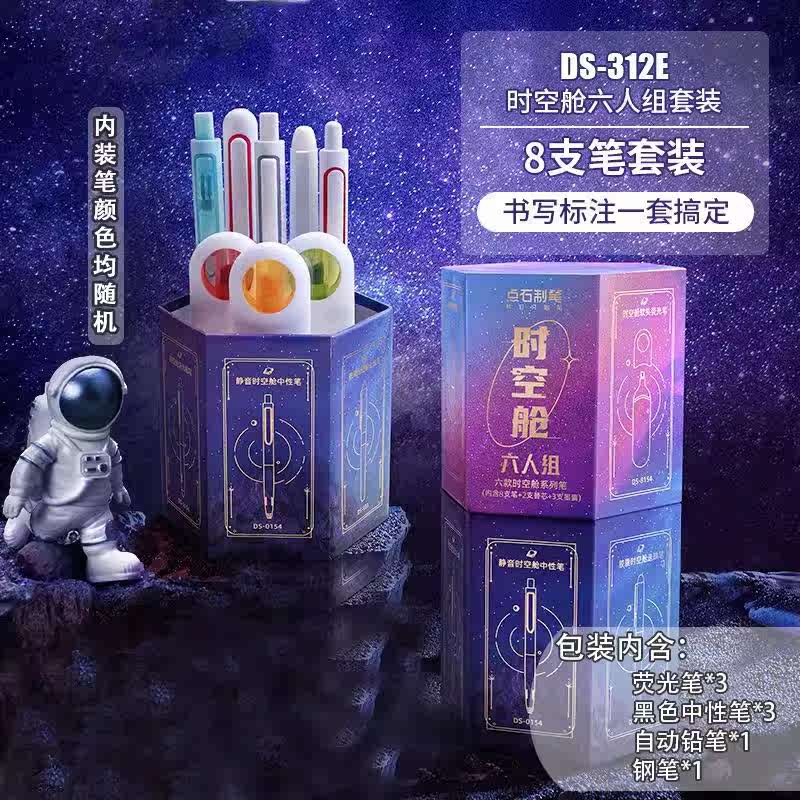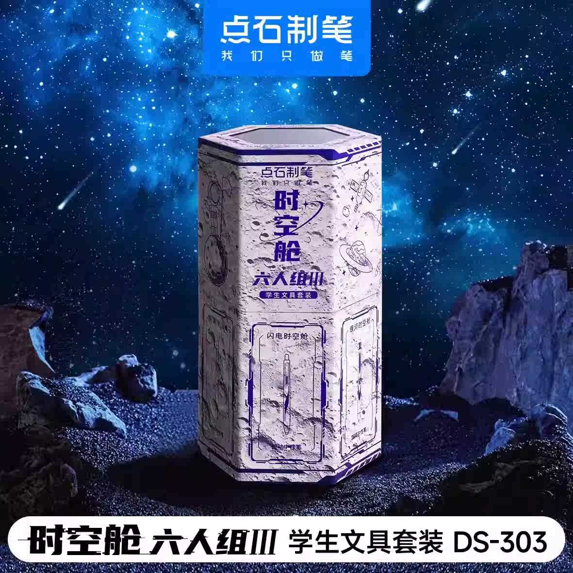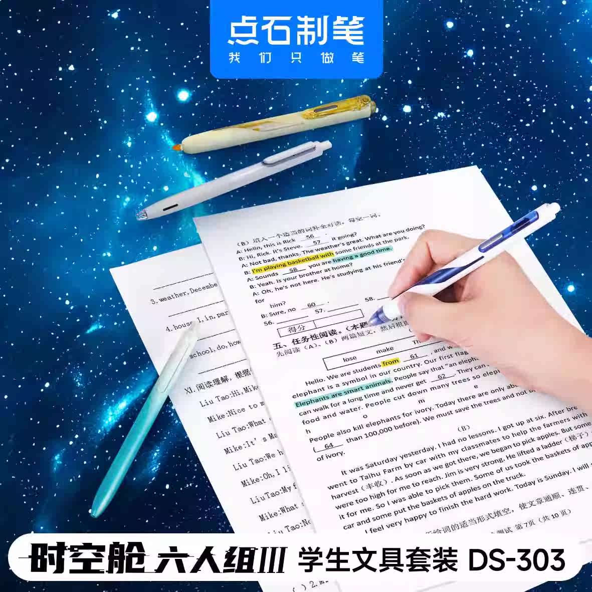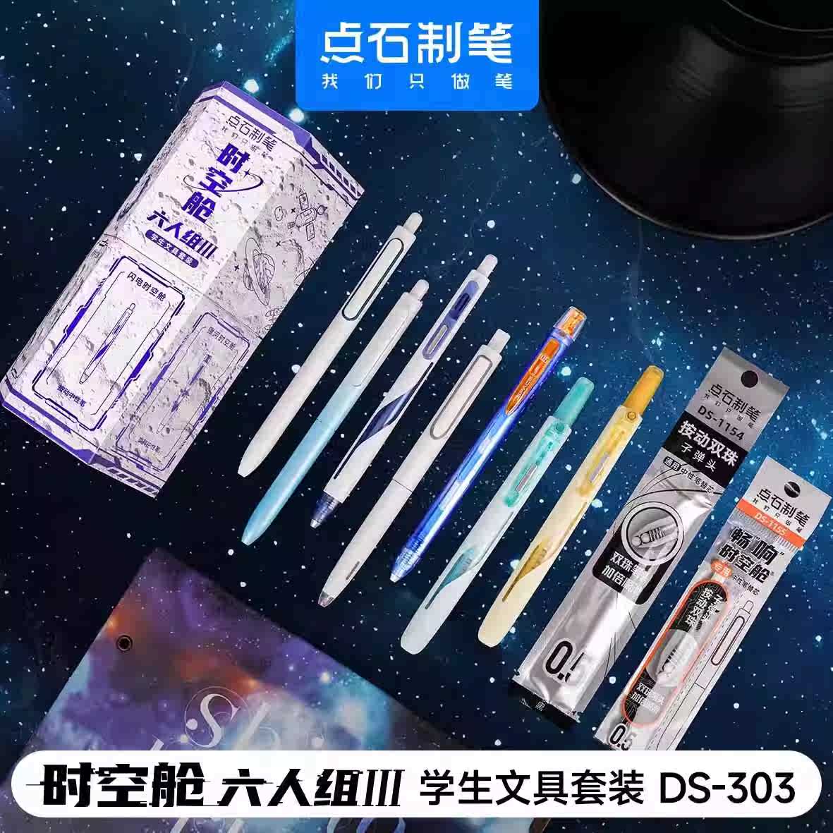点石制笔 时空舱六人组按动中性笔0.5速干学生考试笔 第三代礼盒 DS-303 9件 银色(单位:支)