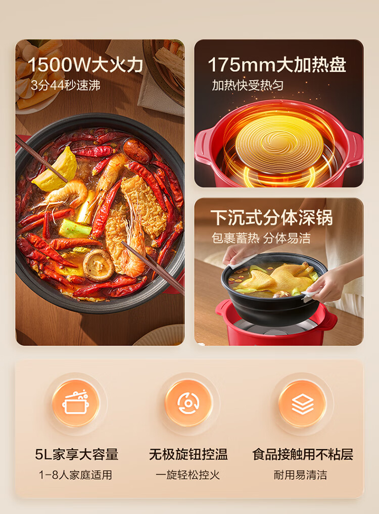 苏泊尔(SUPOR) 电火锅 H50YK757 5L 红色(单位:个)