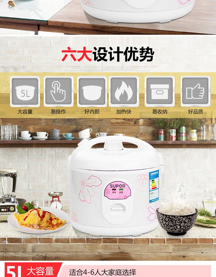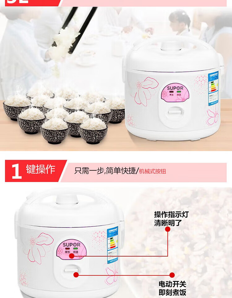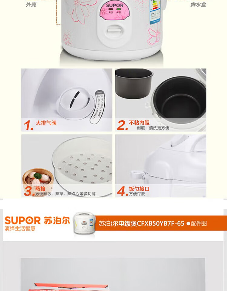 苏泊尔(SUPOR) 机械电饭煲 CFXB40YB7F-65 4L 白色(单位:台)