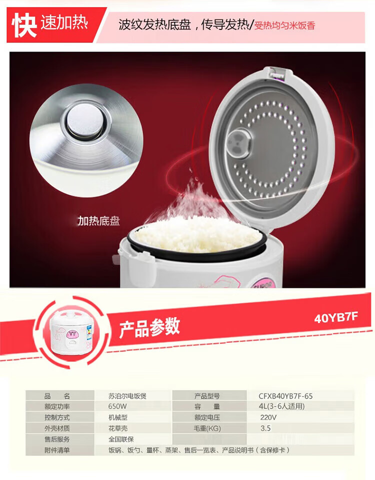 苏泊尔(SUPOR) 机械电饭煲 CFXB50YB7F-65 5L 白色(单位:台)