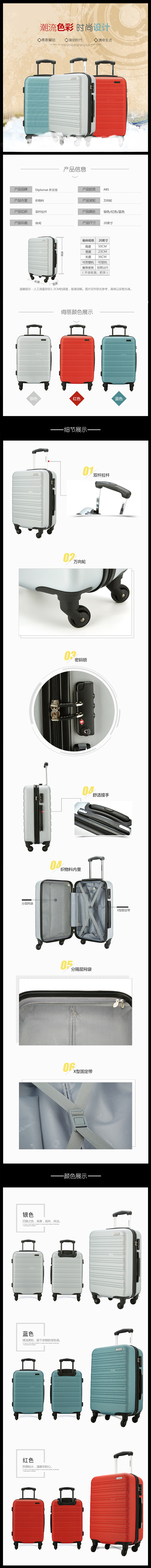 外交官时尚拉杆箱YH-6162红色 红色 20寸
