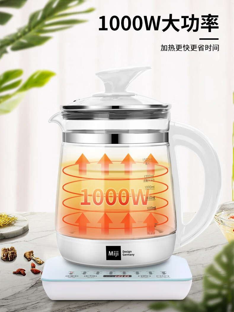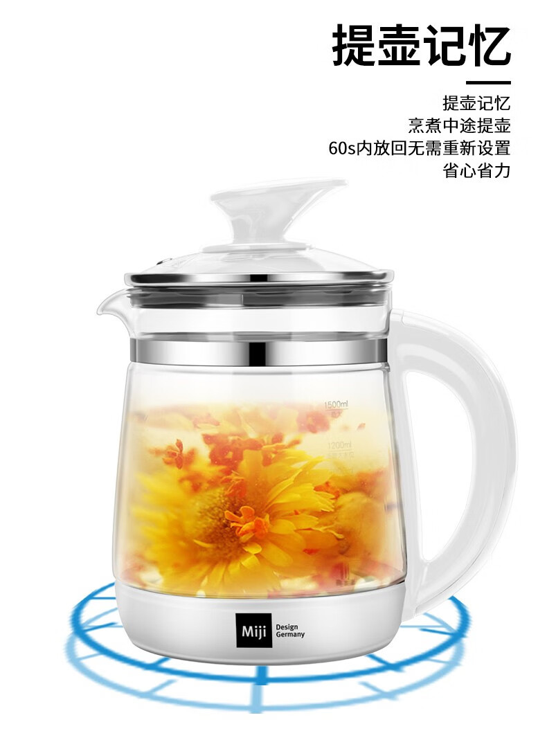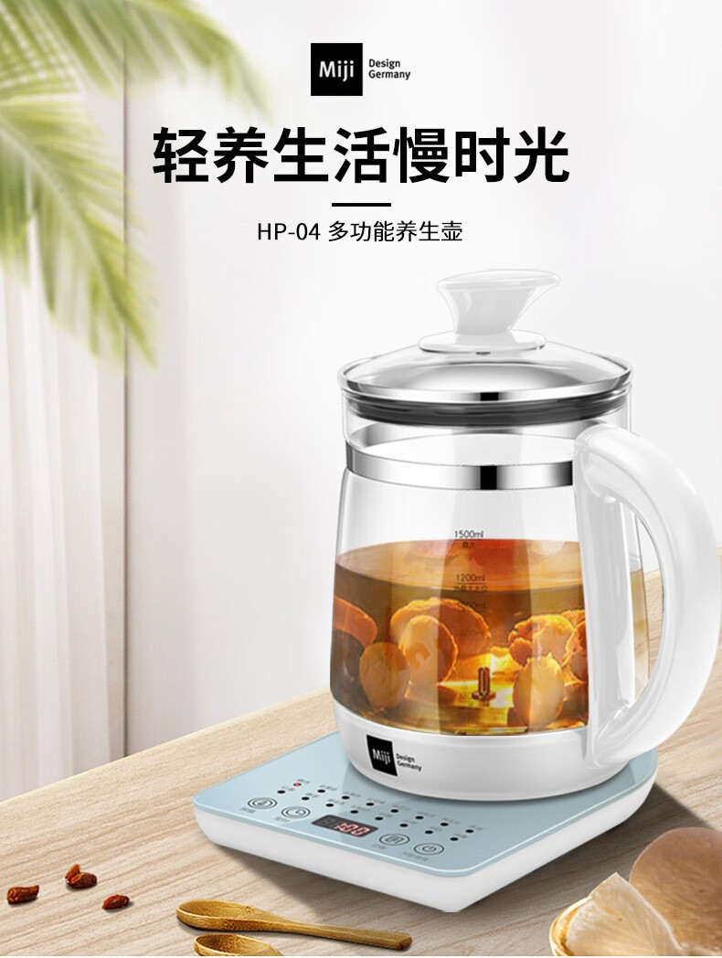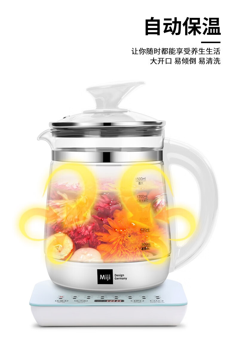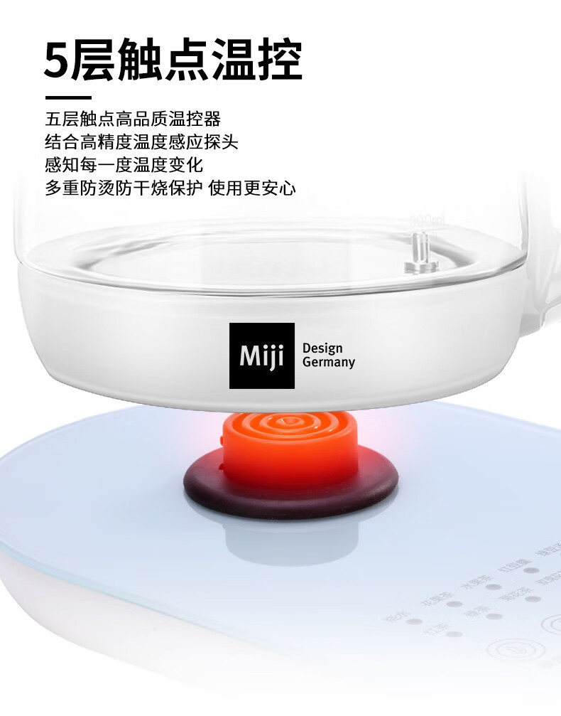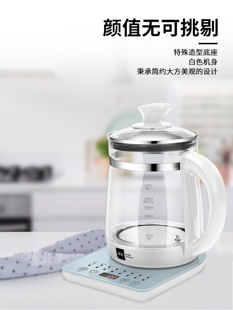 Miji Design Germany养生壶家用电热水壶玻璃煮茶壶1.5升智能触控面板 HP-04 白色