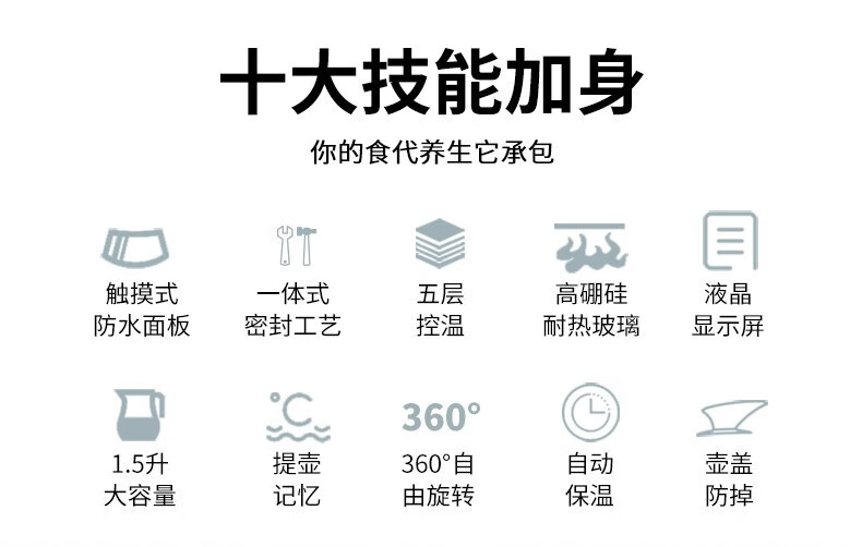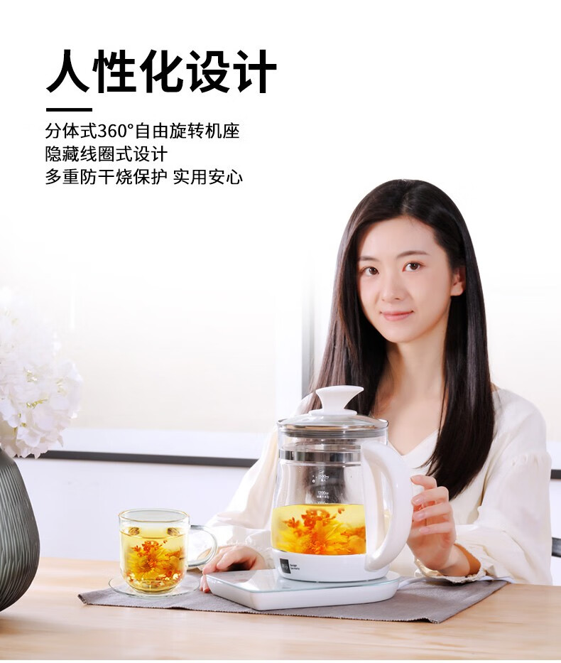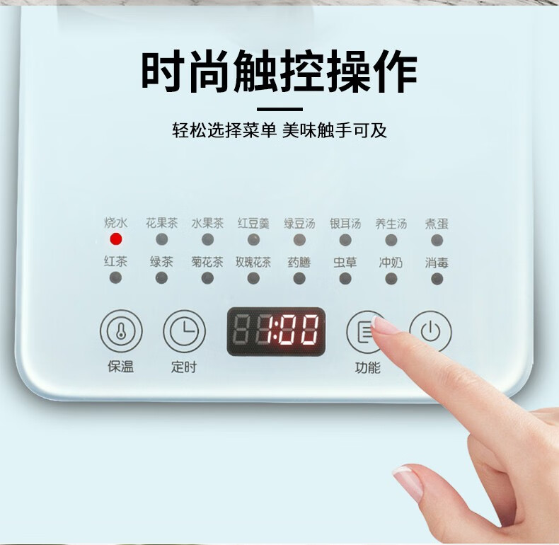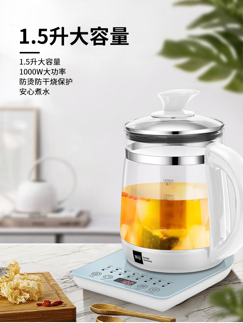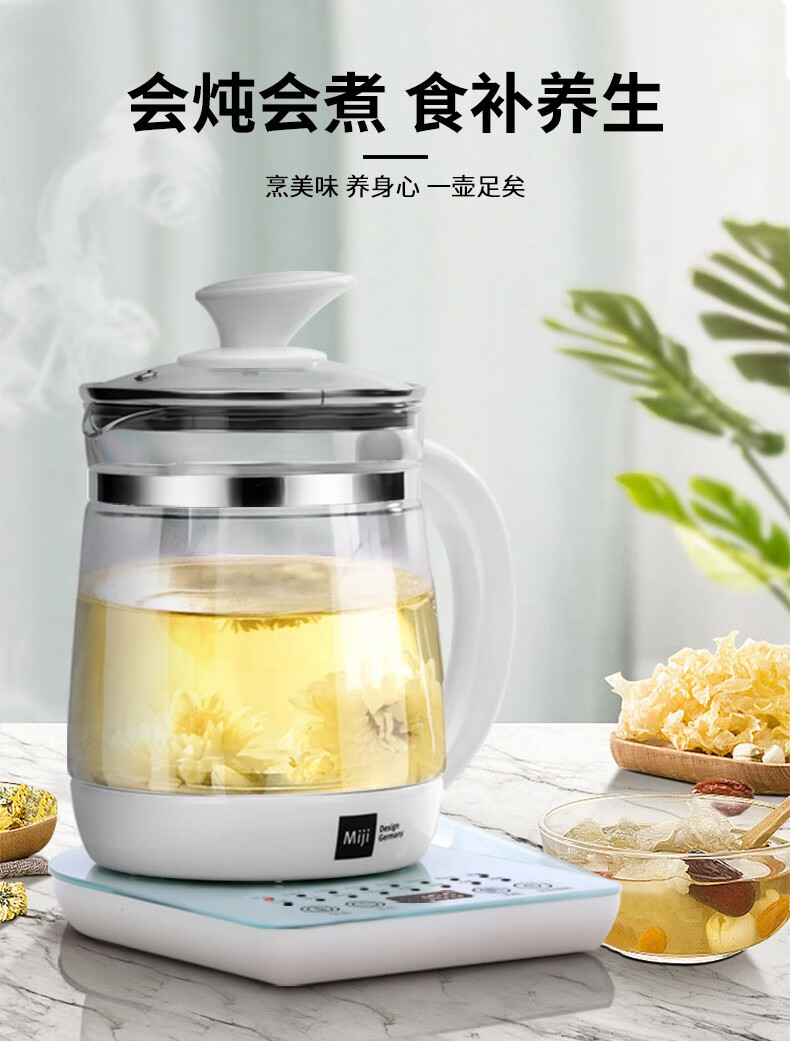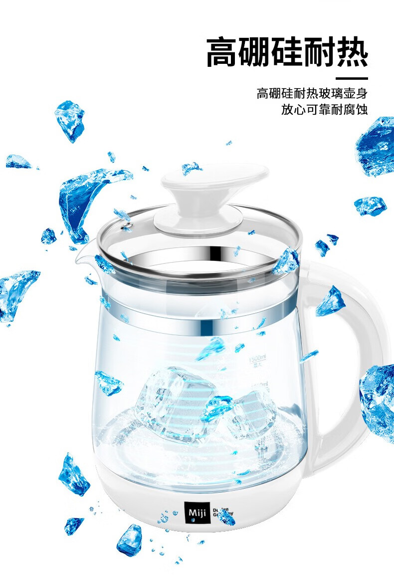 Miji Design Germany养生壶家用电热水壶玻璃煮茶壶1.5升智能触控面板 HP-04 白色