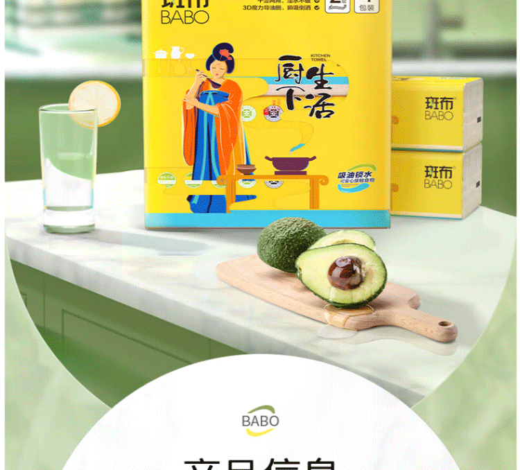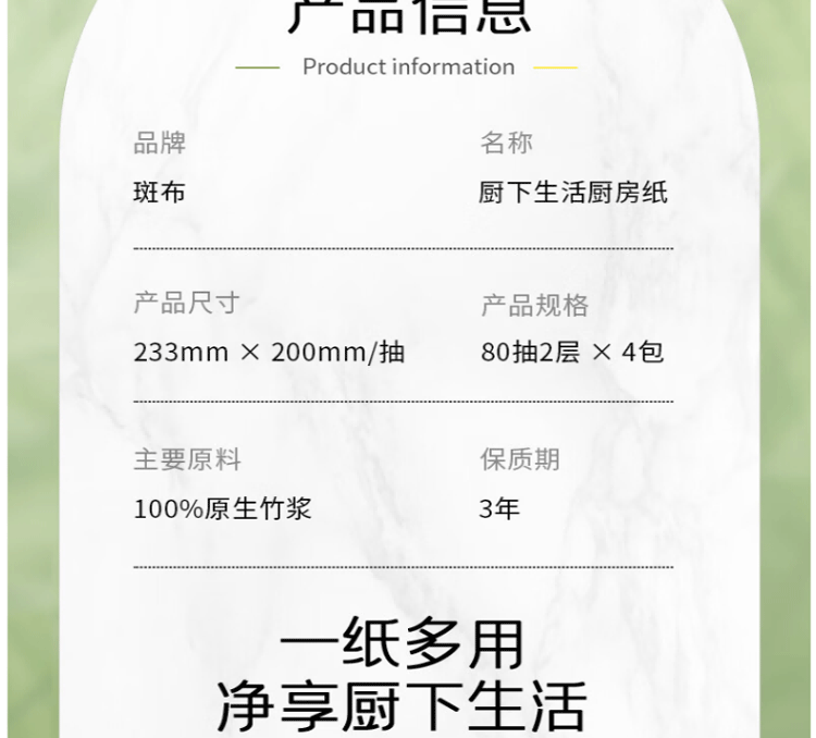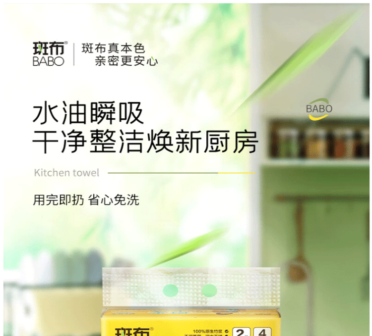 斑布厨房用纸抽纸二层80抽*4包 BF80A4/提 黄色