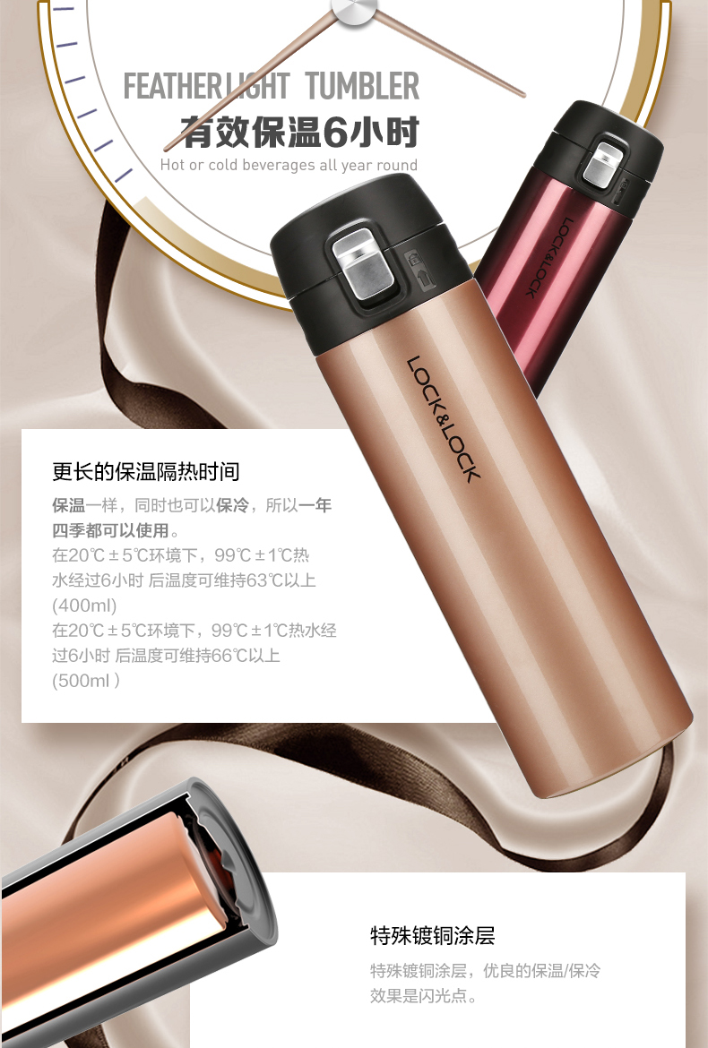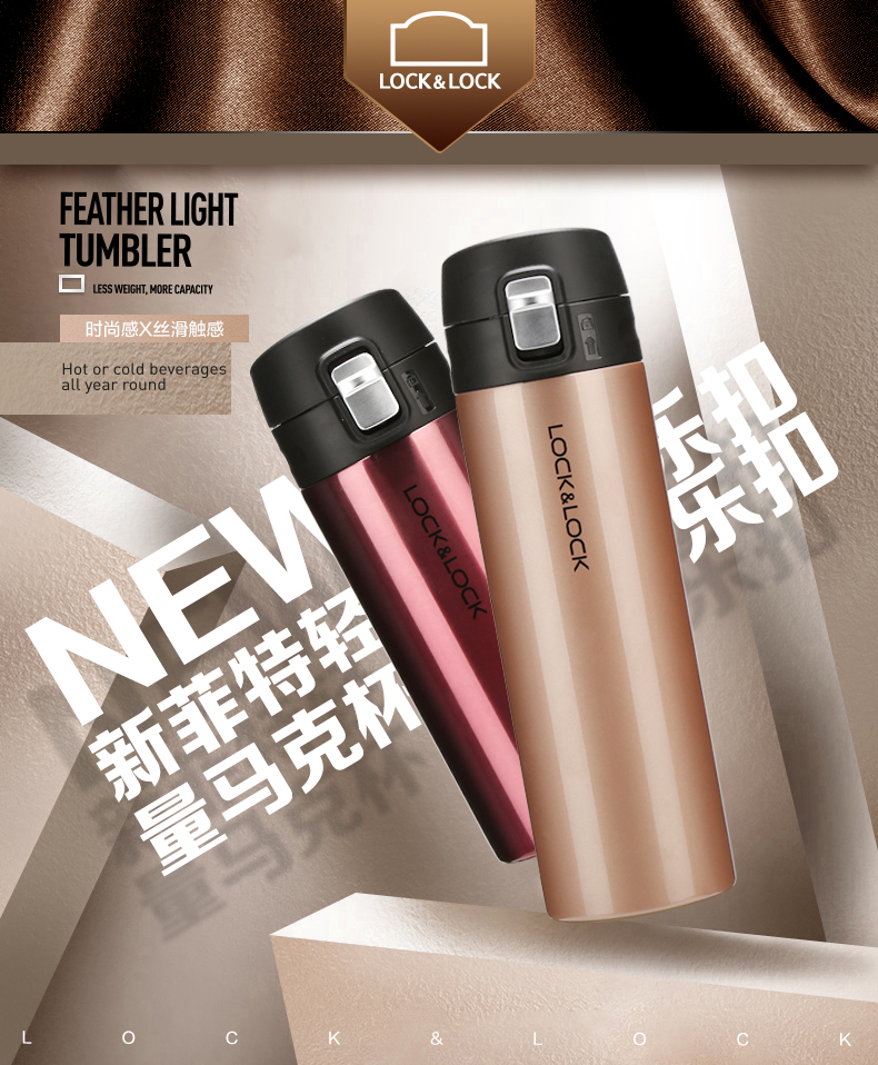 乐扣乐扣新菲特超轻马克杯LHC3219RBR/GPK/SPG 玫瑰金