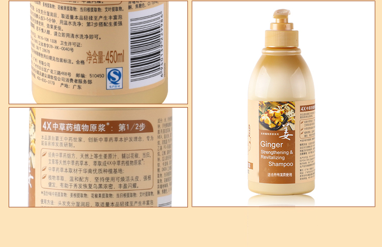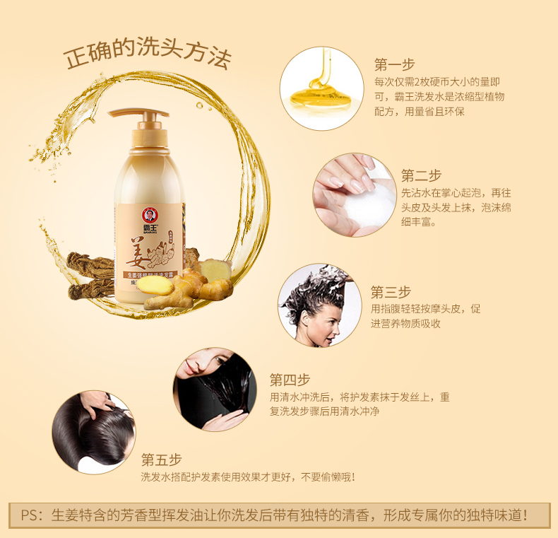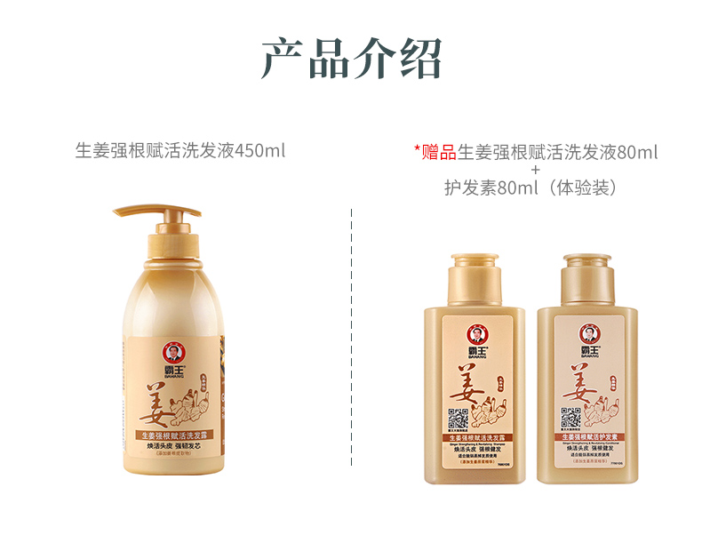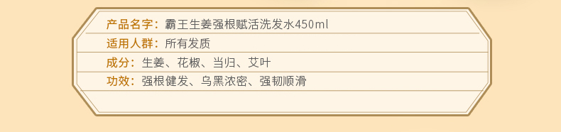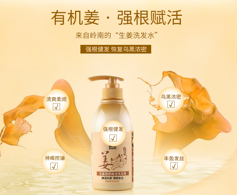 霸王(BAWANG)生姜强根赋活洗发露10101021632 450ml(单位:瓶) 黄色