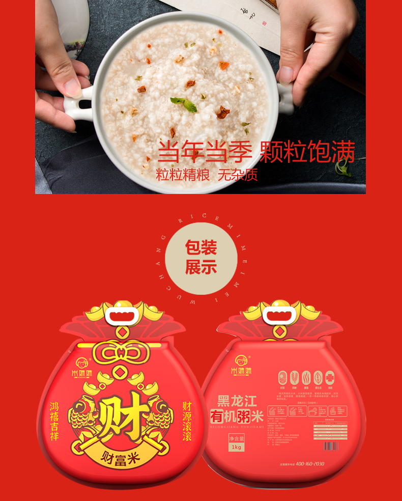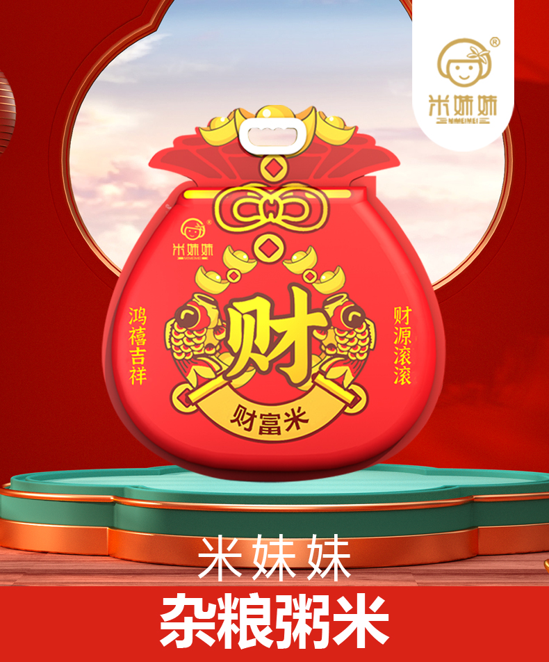 米妹妹(MIMEIMEI) 真空包装五常粥米 福袋财富米 1kg 红色(单位:袋)