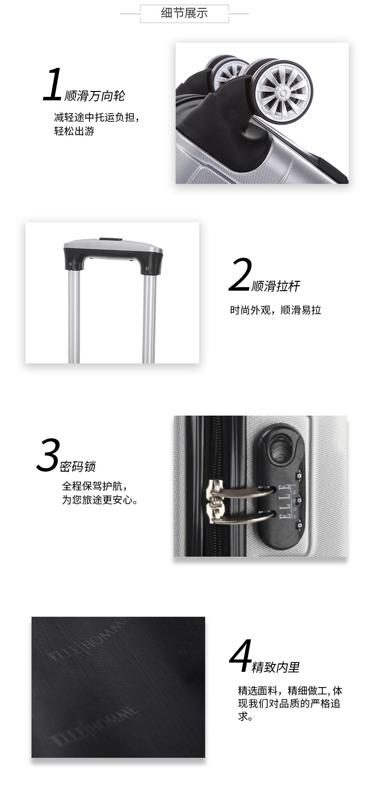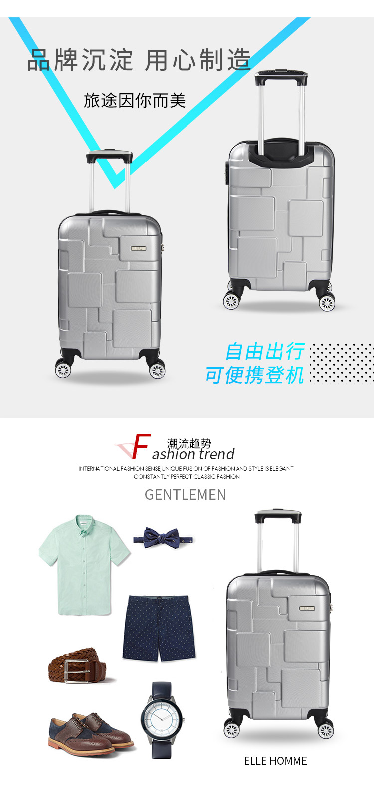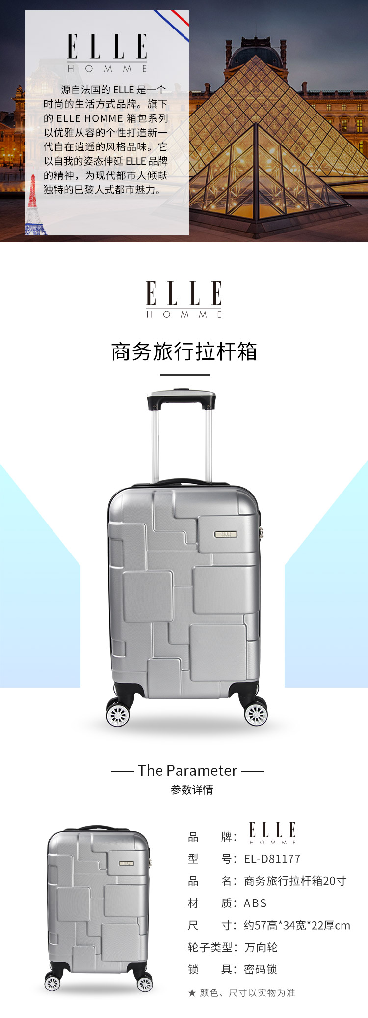 ELLE HOMME拉杆箱20英寸商务休闲旅行EL-D81177 20寸 银色 20寸