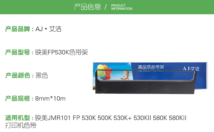 艾洁(AJ) FP530K 打印量8mm*10m 适用映美JMR101 FP 530K 500K 530K+ 530KII 580K 580KII打印机 色带 1.00 盒/只 (计价单位:只) 黑色