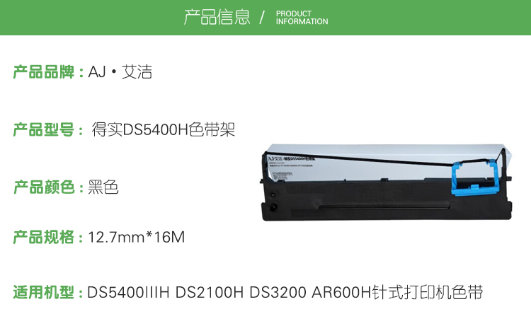 艾洁(AJ) DS5400H 打印量12.7mm*16M 适用DS5400IIIH DS2100H DS3200 AR600H针式打印机 色带 1.00 盒/只 (计价单位:只) 黑色
