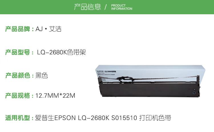 艾洁(AJ) LQ-2680K 打印量12.7MM*40M 适用爱普生EPSON LQ-2680K S015510 打印机 色带 1.00 盒/只 (计价单位:只) 黑色