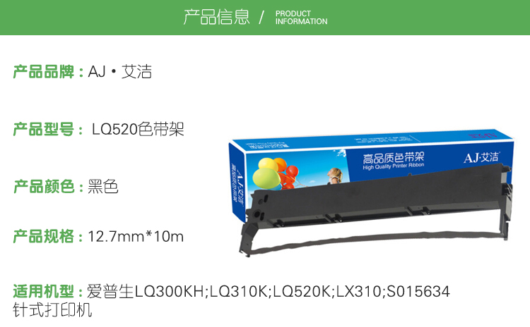 艾洁(AJ) LQ520 打印量12.7mm*10m 适用爱普生LQ300KH;LQ310K;LQ520K;LX310;S015634针式打印机 色带 1.00 盒/只 (计价单位:只) 黑色