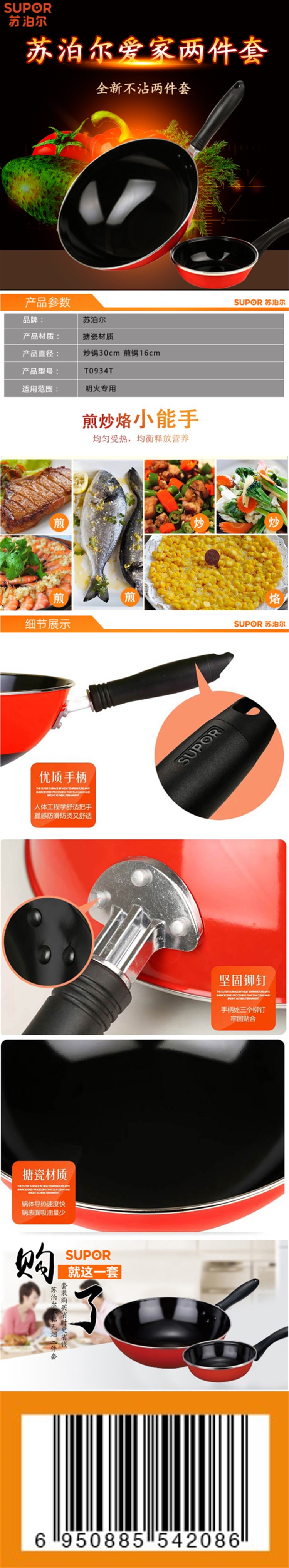 苏泊尔(SUPOR)爱家二件套/T0934T(30cm炒锅+16cm煎锅) T0934T (套) 红色