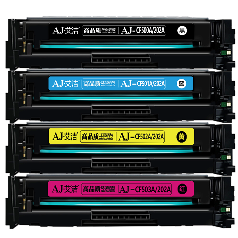 艾洁(AJ) CF500A(202A) 四色套装 打印量黑色1400页 彩色1300页 适用惠普HP MFP254dn/M254dw/M254nw 硒鼓 4.00 只/套 (计价单位:套) 黑蓝黄红