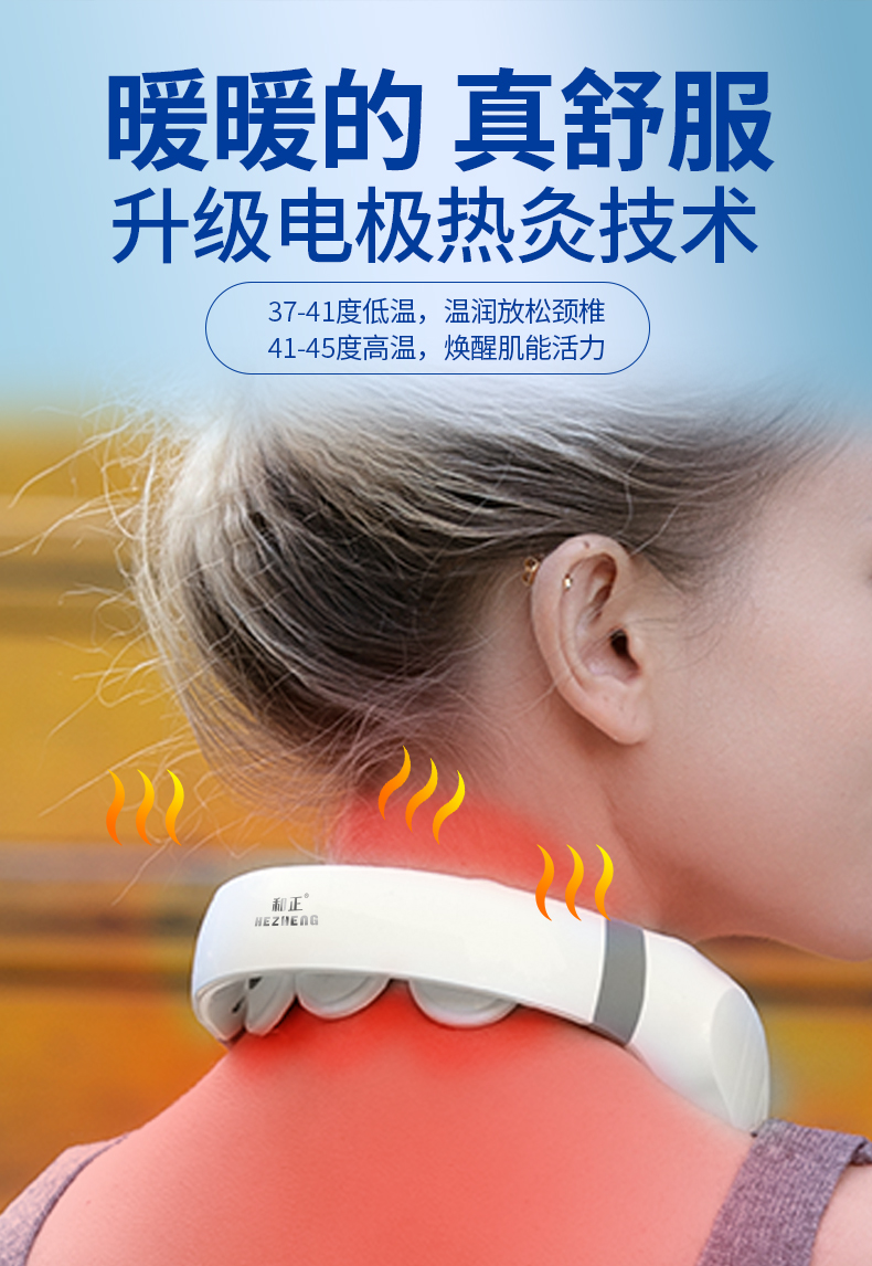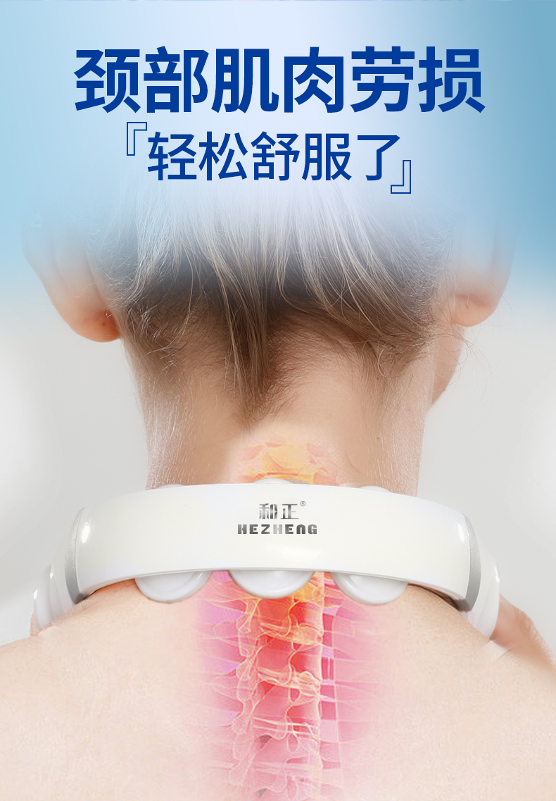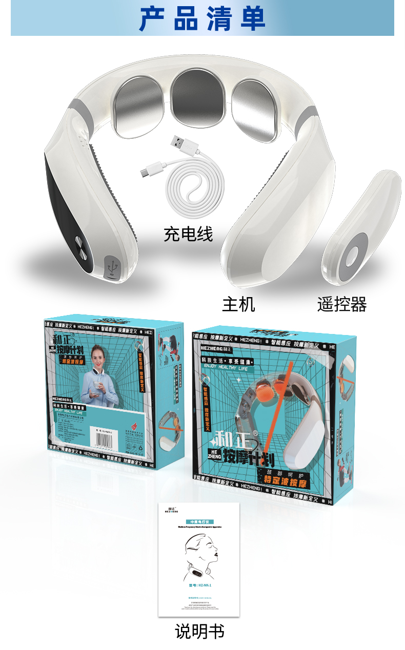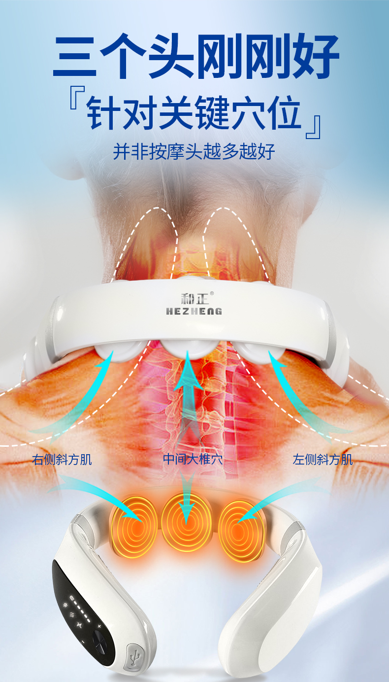 和正颈椎按摩器 颈部按摩仪 三头护颈仪 热敷振动脉冲HZ-INECK-1遥控款(单位:个)) 白色
