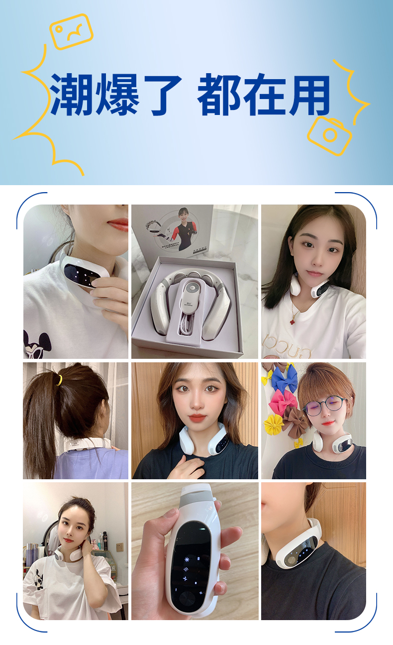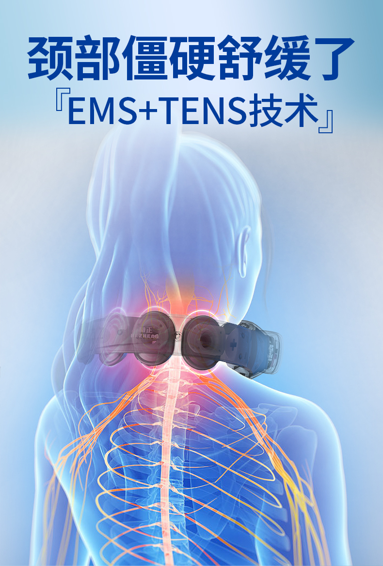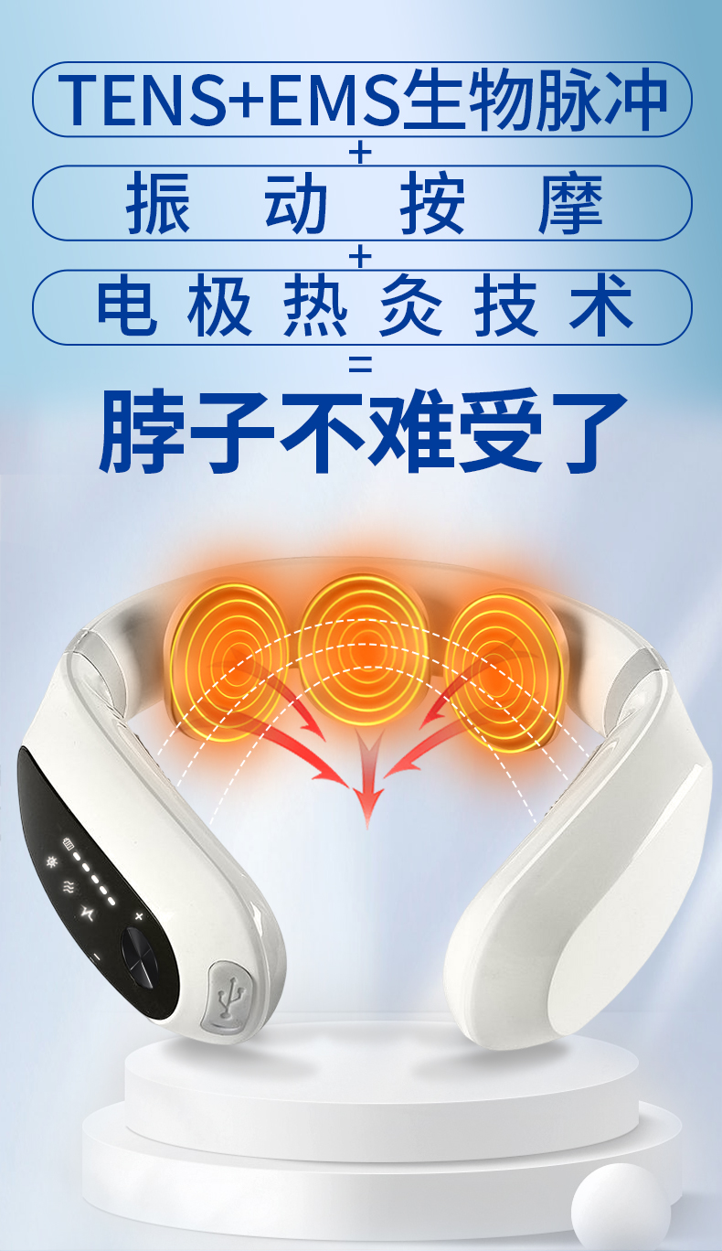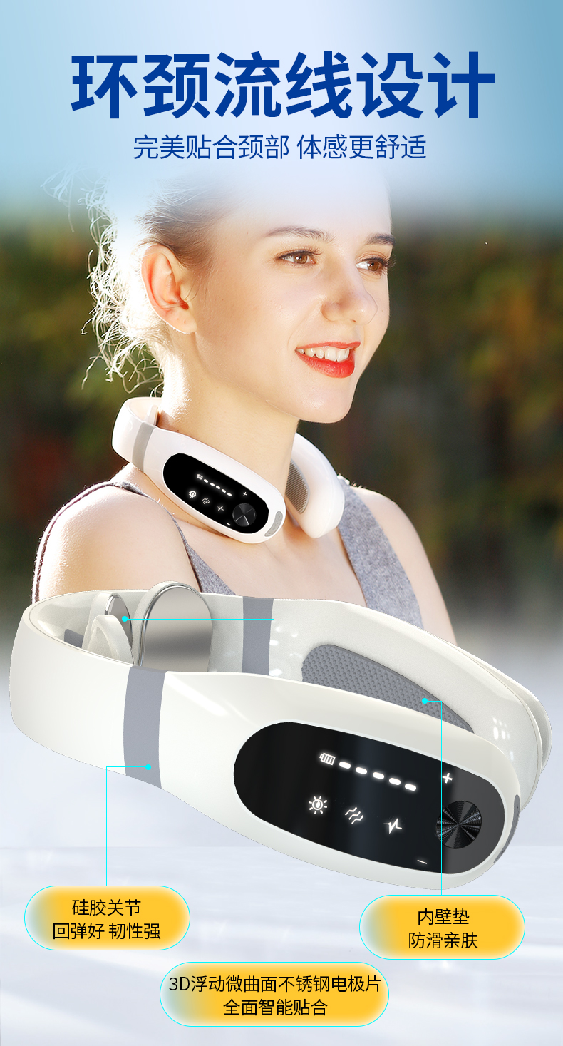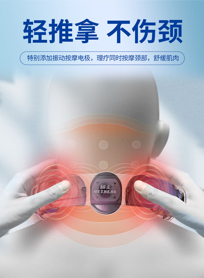 和正颈椎按摩器 颈部按摩仪 三头护颈仪 热敷振动脉冲HZ-INECK-1遥控款(单位:个)) 白色