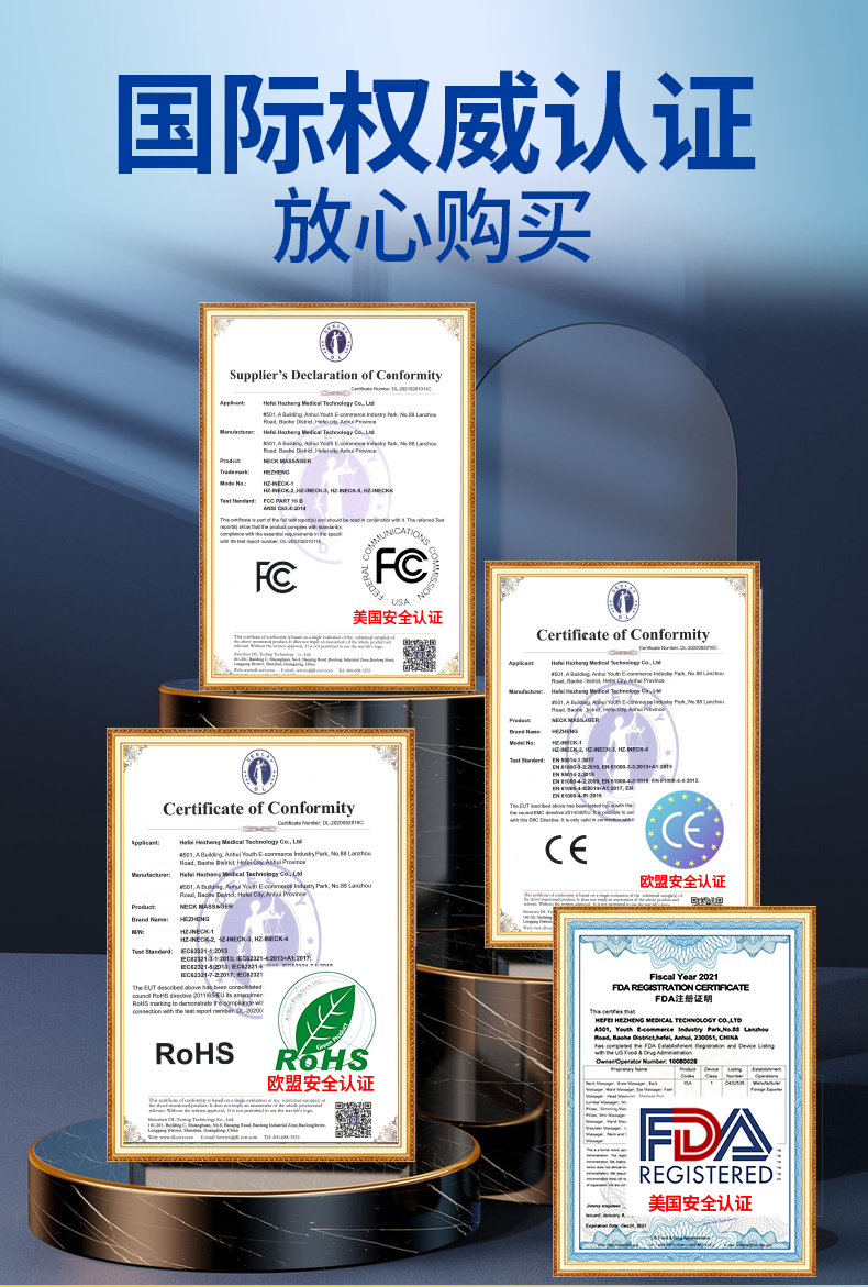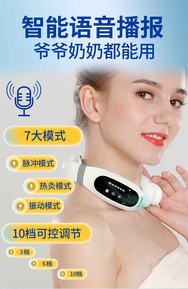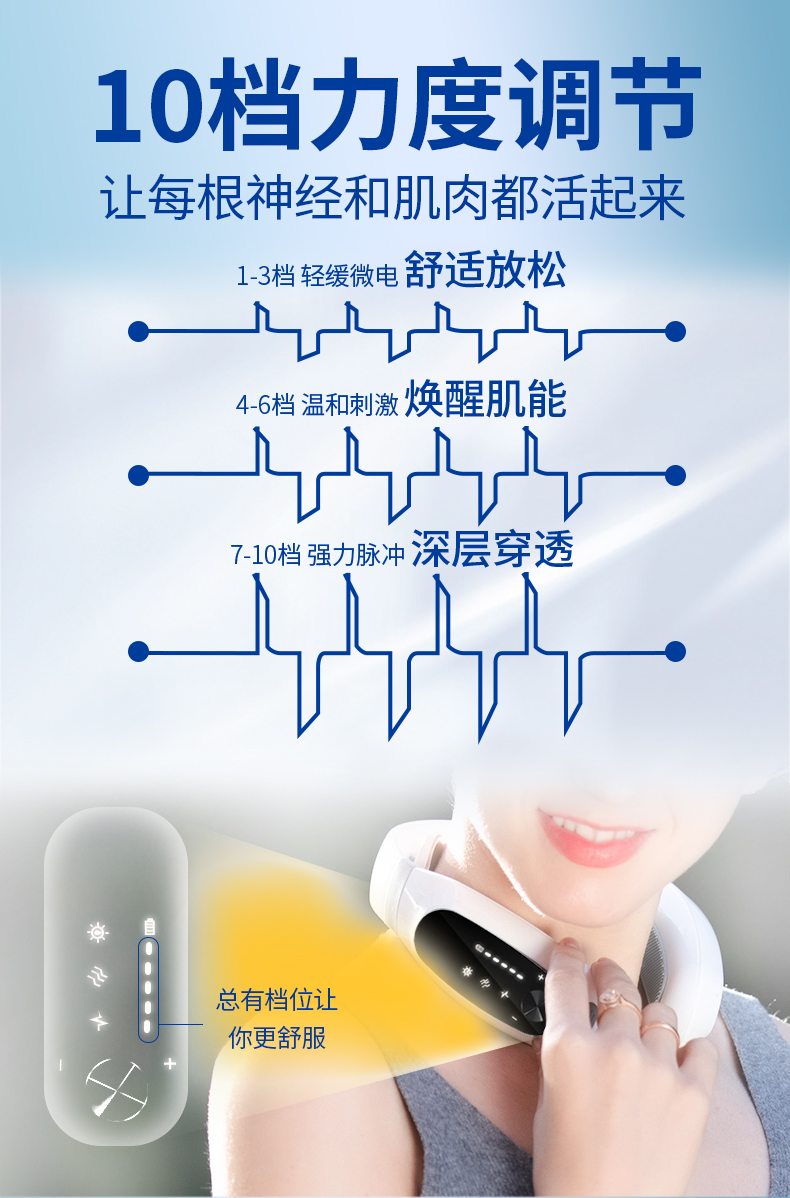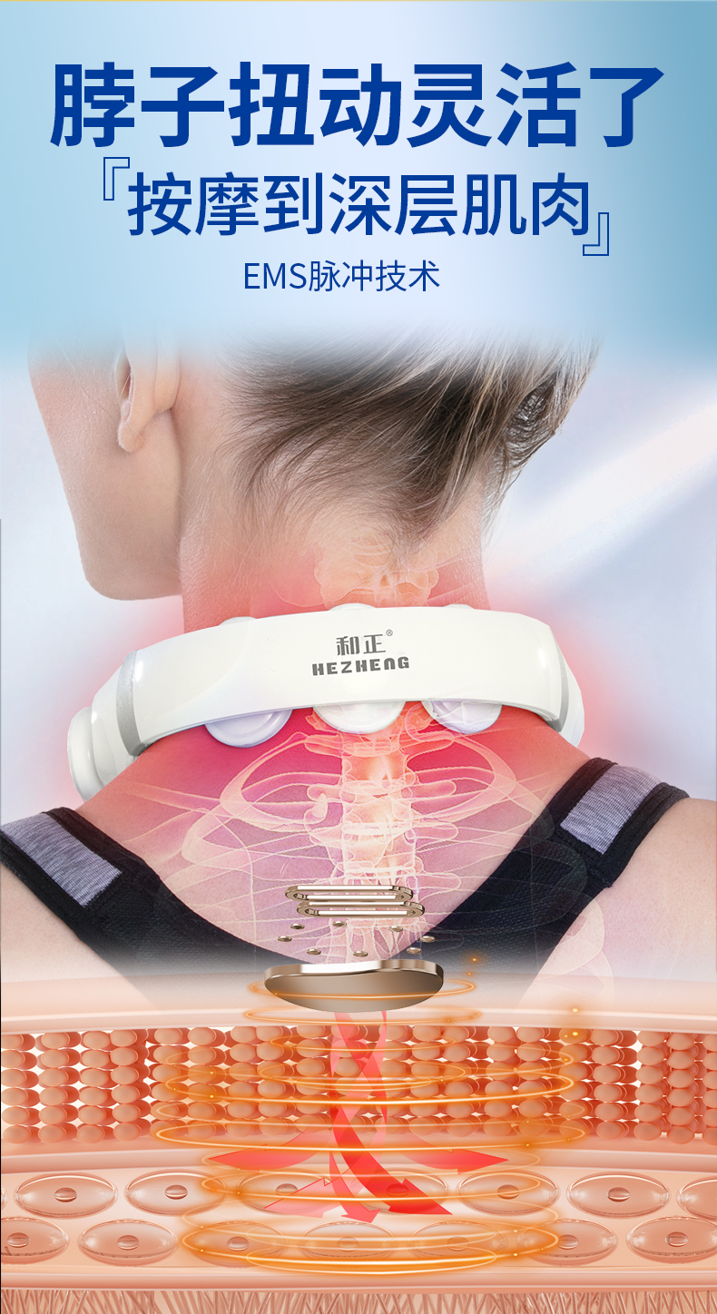 和正颈椎按摩器 颈部按摩仪 三头护颈仪 热敷振动脉冲HZ-INECK-1遥控款(单位:个)) 白色