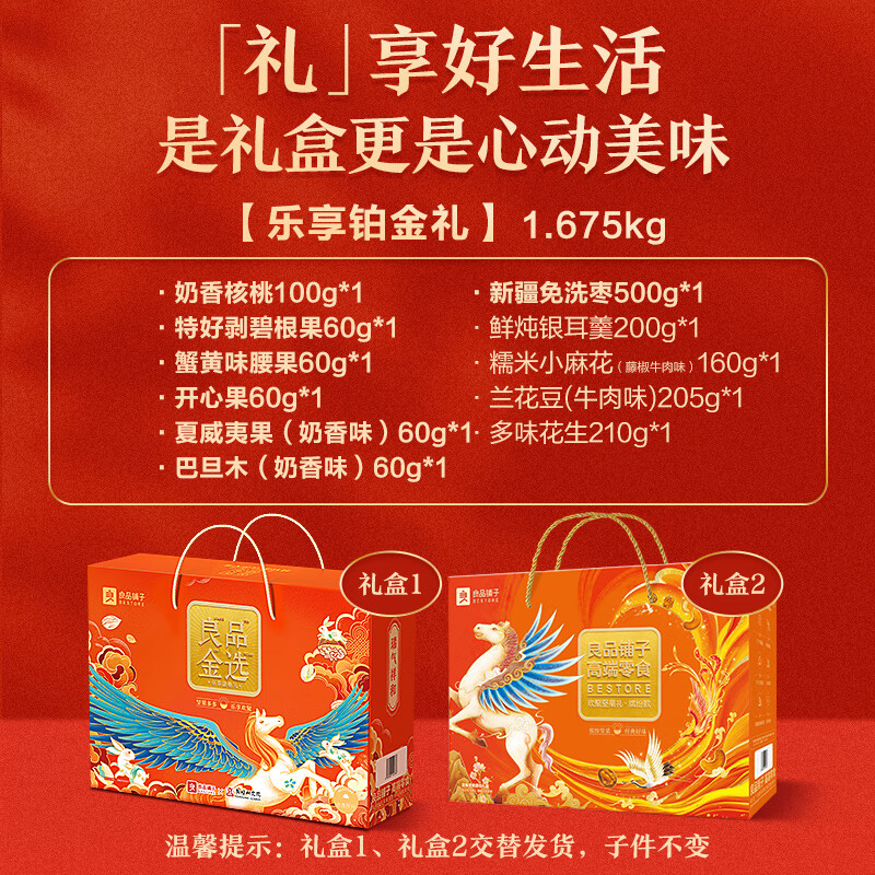 良品铺子乐享铂金礼1675克零食礼盒 单位:盒 炫橙色