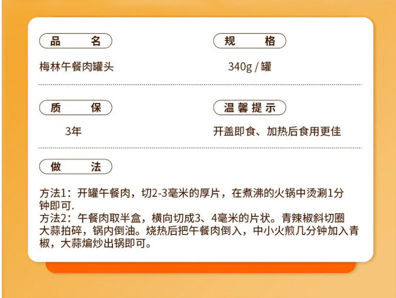 梅林午餐肉罐头(梅系列) 340g*2 单位:盒 红色