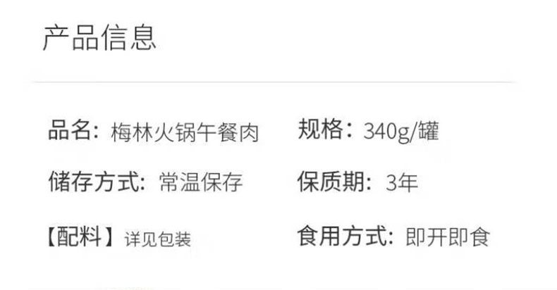 梅林牌火锅午餐肉罐头 340g*2 单位:盒 红色