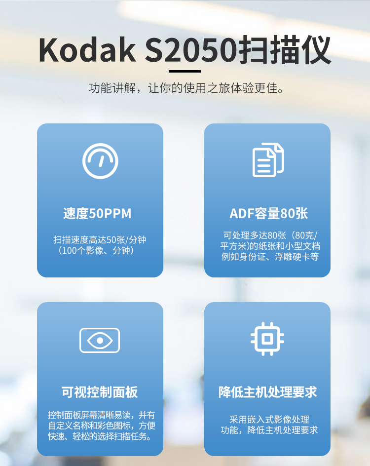 柯达(Kodak)S2050扫描仪A4高速高清双面自动进纸彩色扫描仪50ppm /100ipm 个 白色