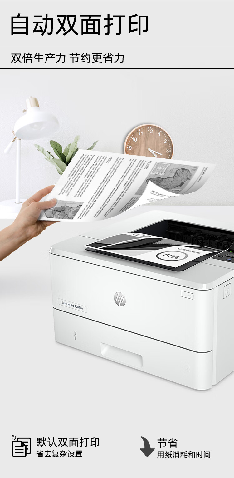 惠普(HP)4004dw黑白自动双面激光打印机 无线连接 有线连接 稳定高效 小型企业 台 白色