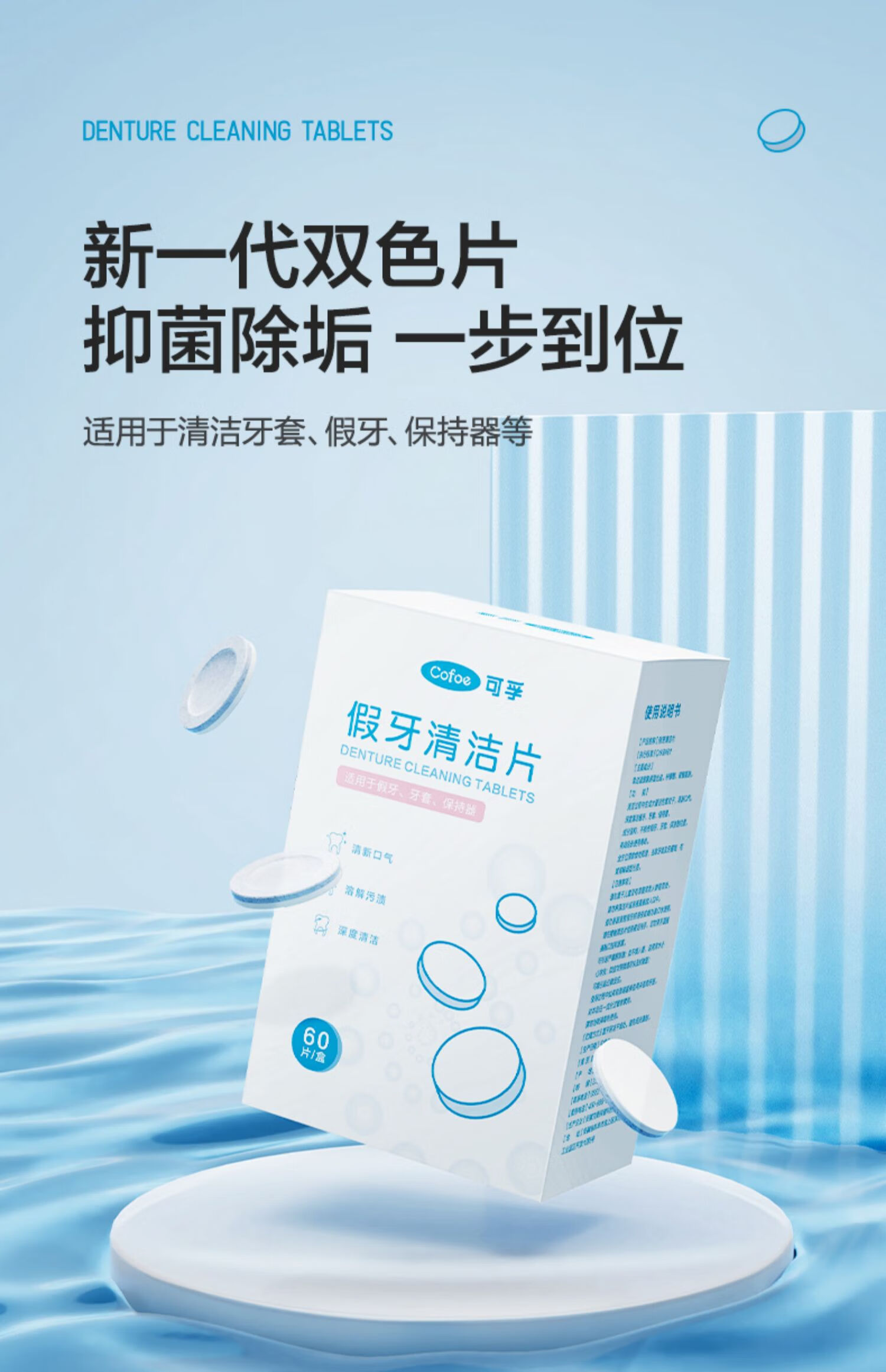 可孚假牙清洁片 60片/盒*2盒