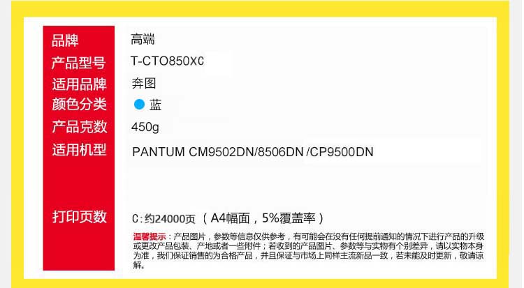 高端粉盒CTO850XC专业版适用奔图PANTUM CM9502DN/8506DN/CP9500DN 蓝色
