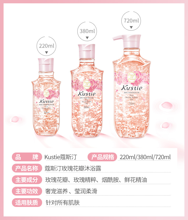 蔻斯汀(升级版)玫瑰花瓣沐浴露720ml*2(计价单位:套) 粉色