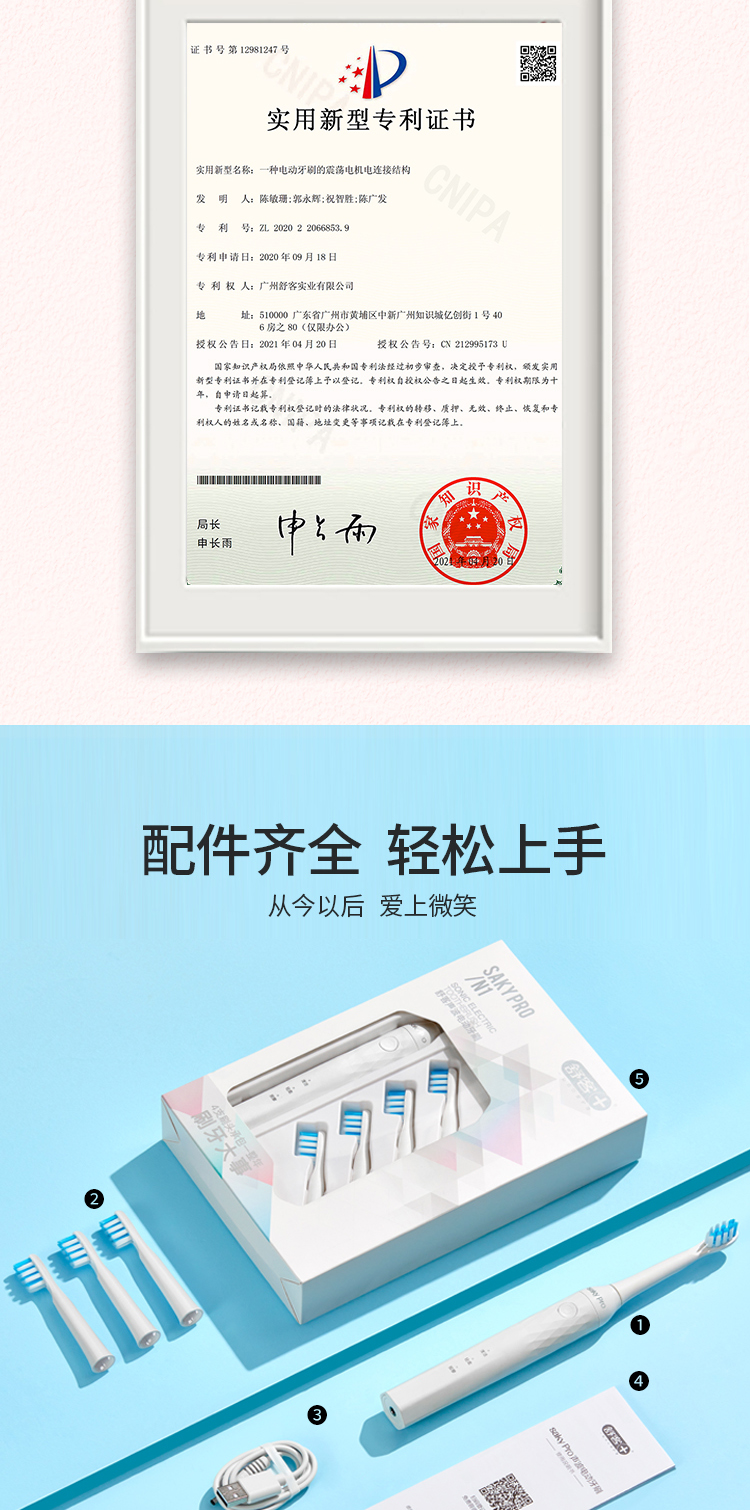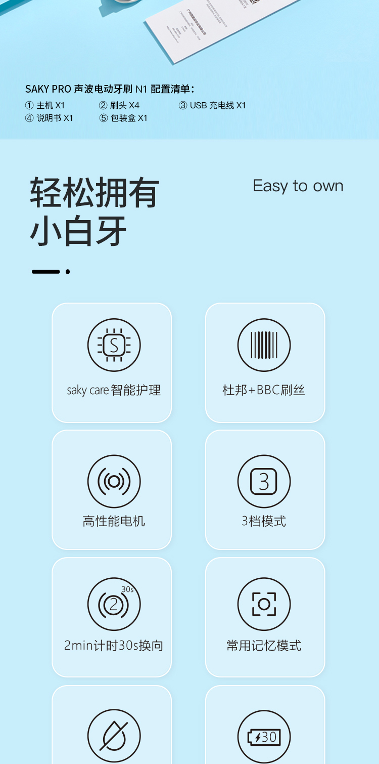 舒客 N1电动牙刷 1主机4刷头(单位:套)白色 钢琴白